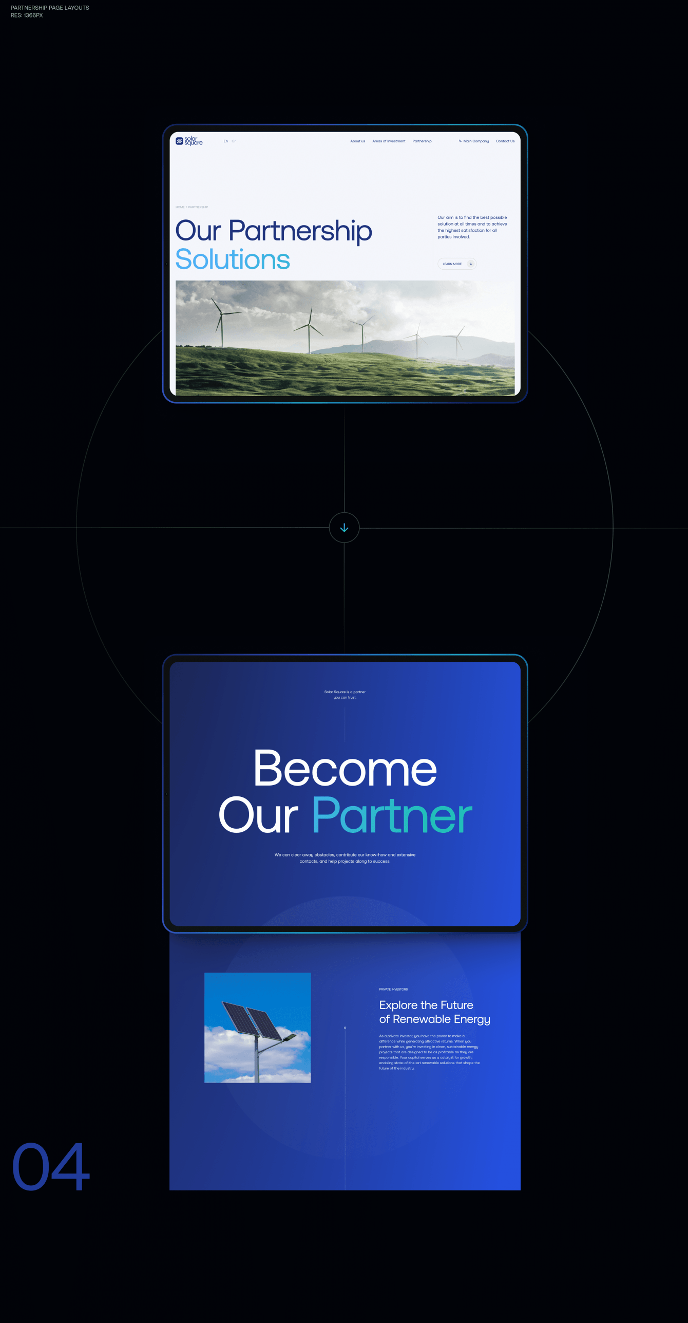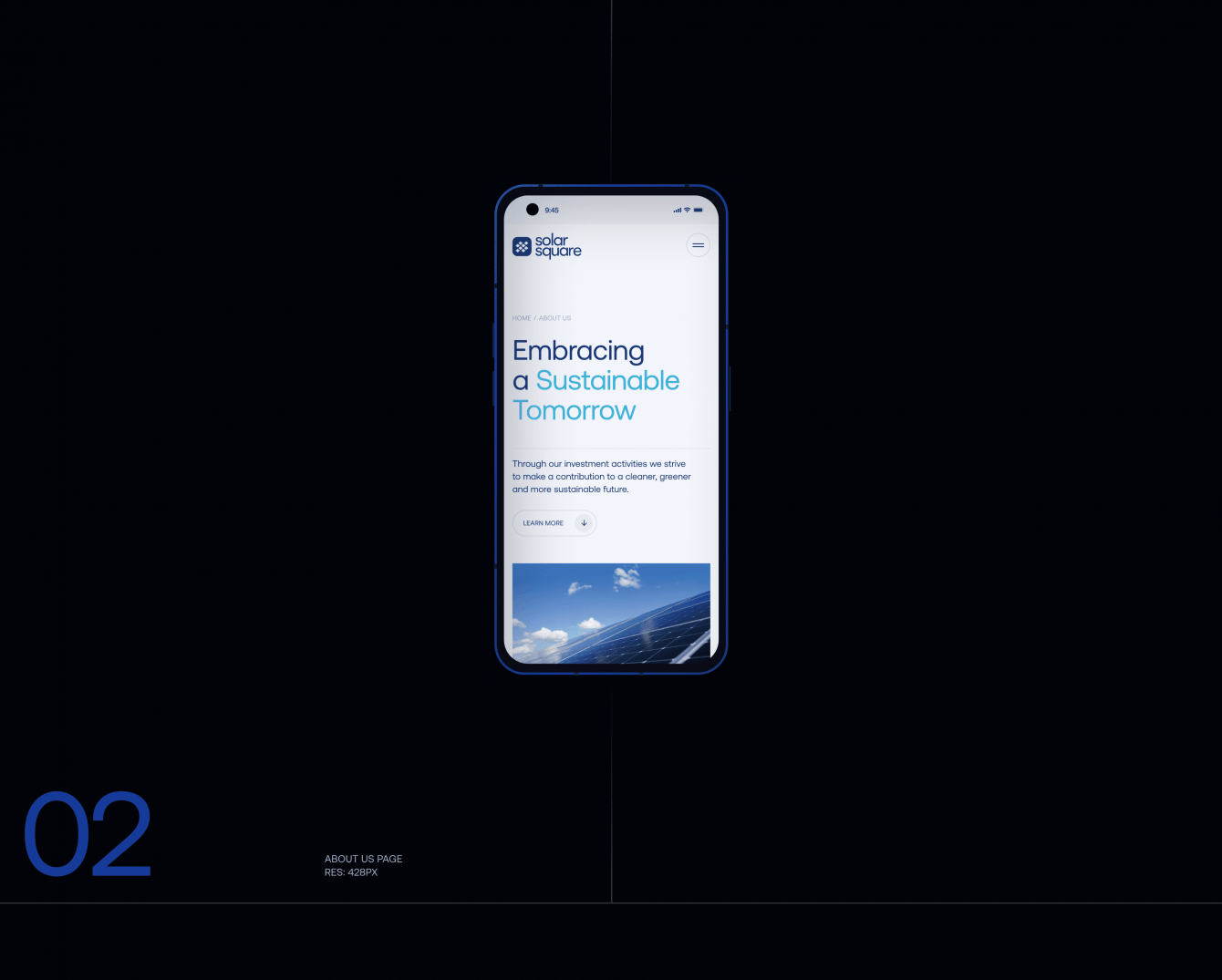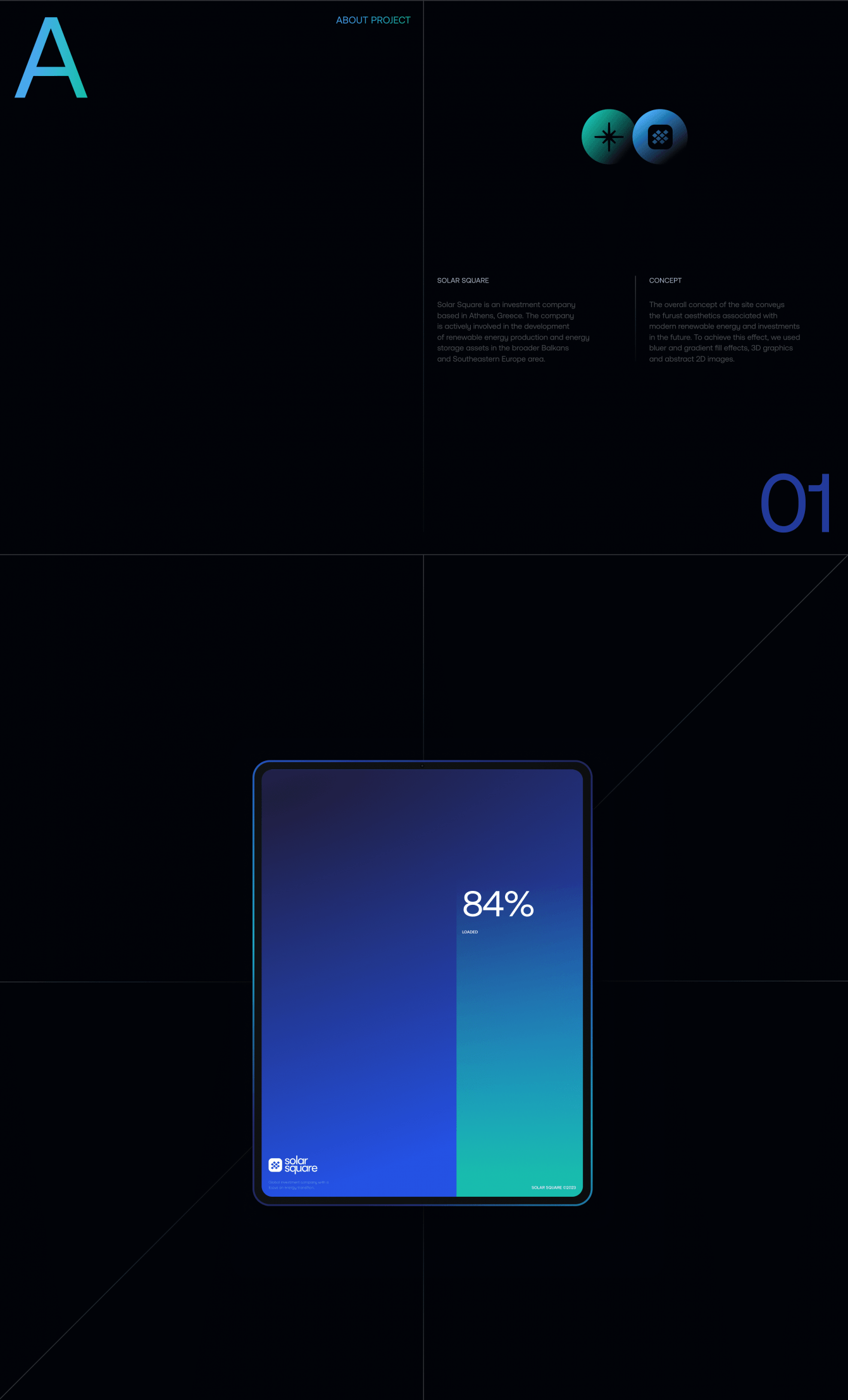 На протяжении всей работы мы вдохновлялись областью деятельность самой компании. Компания инвестирует в оборудование и системы получения солнечной энергии. Именно поэтому в логотипе можно увидеть отсылку на комплекс солнечных панелей, а синий цвет выбран как образ энергии и ее движения.