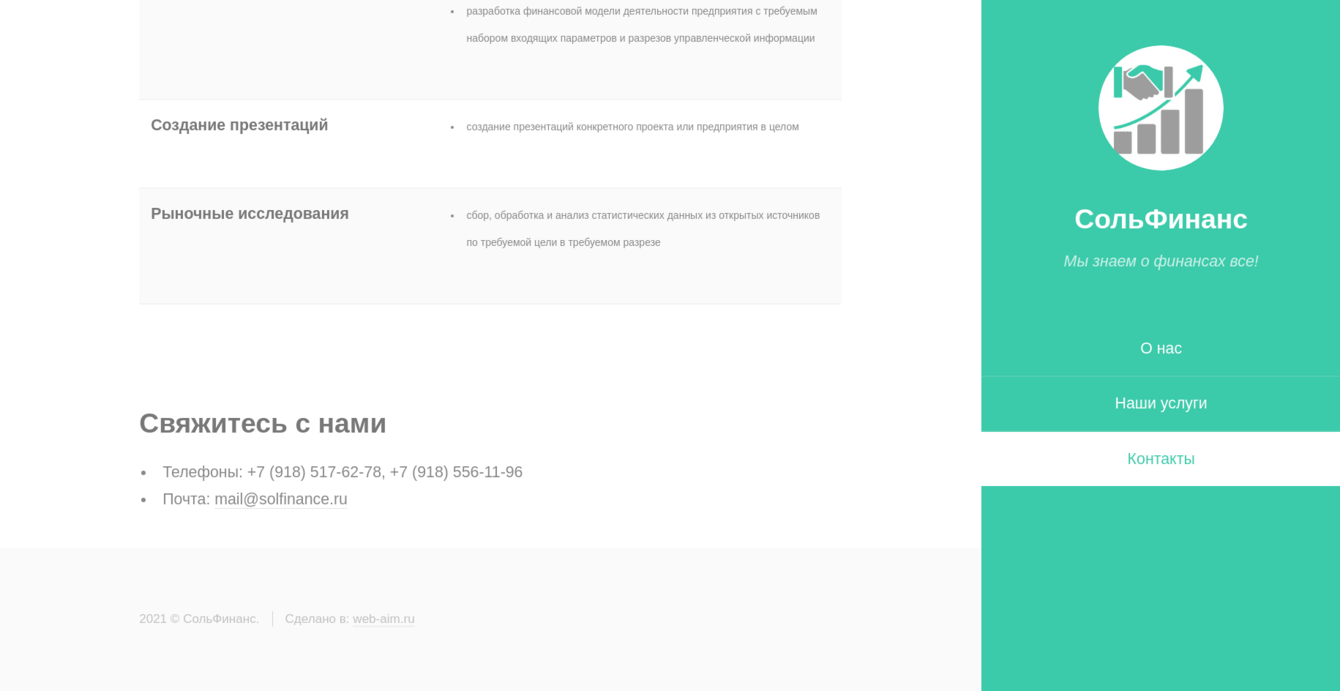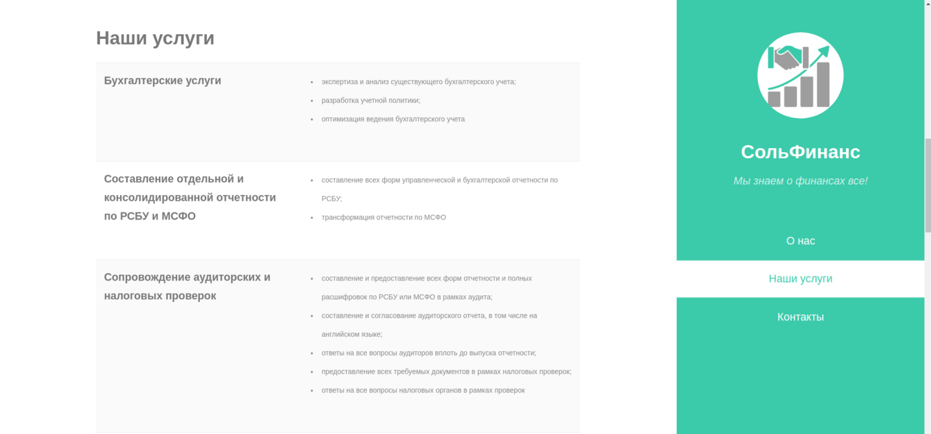 - Разработать сайт, имеющий адаптивную верстку. - Разработать основные разделы услуг компании.