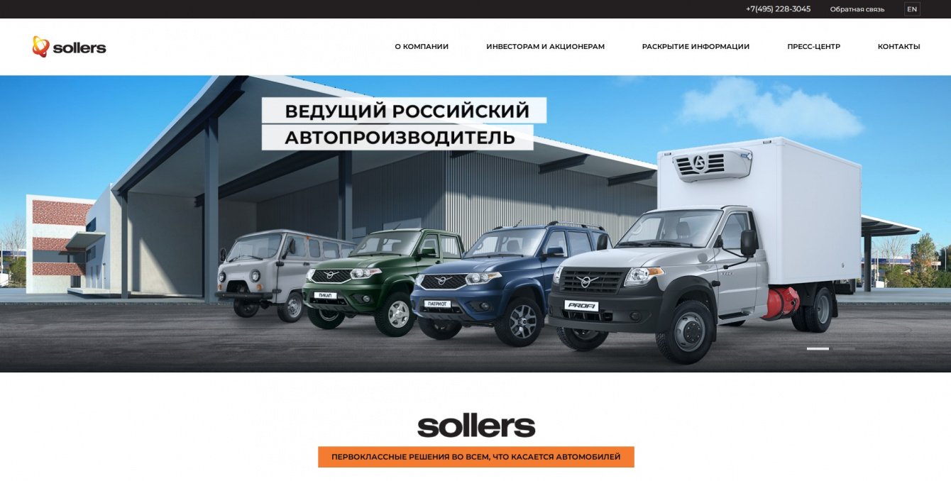 Разработка корпоративного сайта для ведущей Российской автомобильной компании - ПАО "Соллерс"