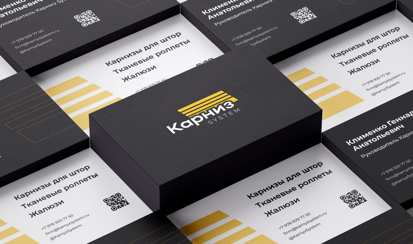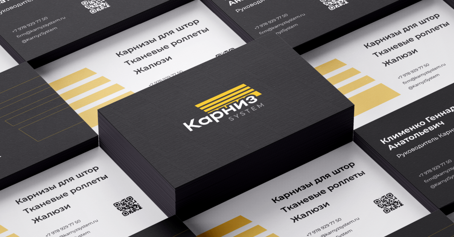 Брендбук для «Карниз System»: ребрендинг с доработкой логотипа, разработкой фирменного стиля для производства и розничной продажи солнцезащитных систем и комплектующих.