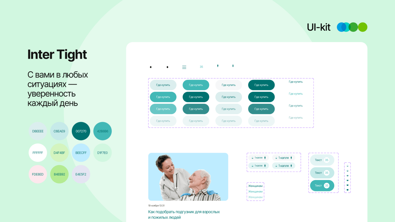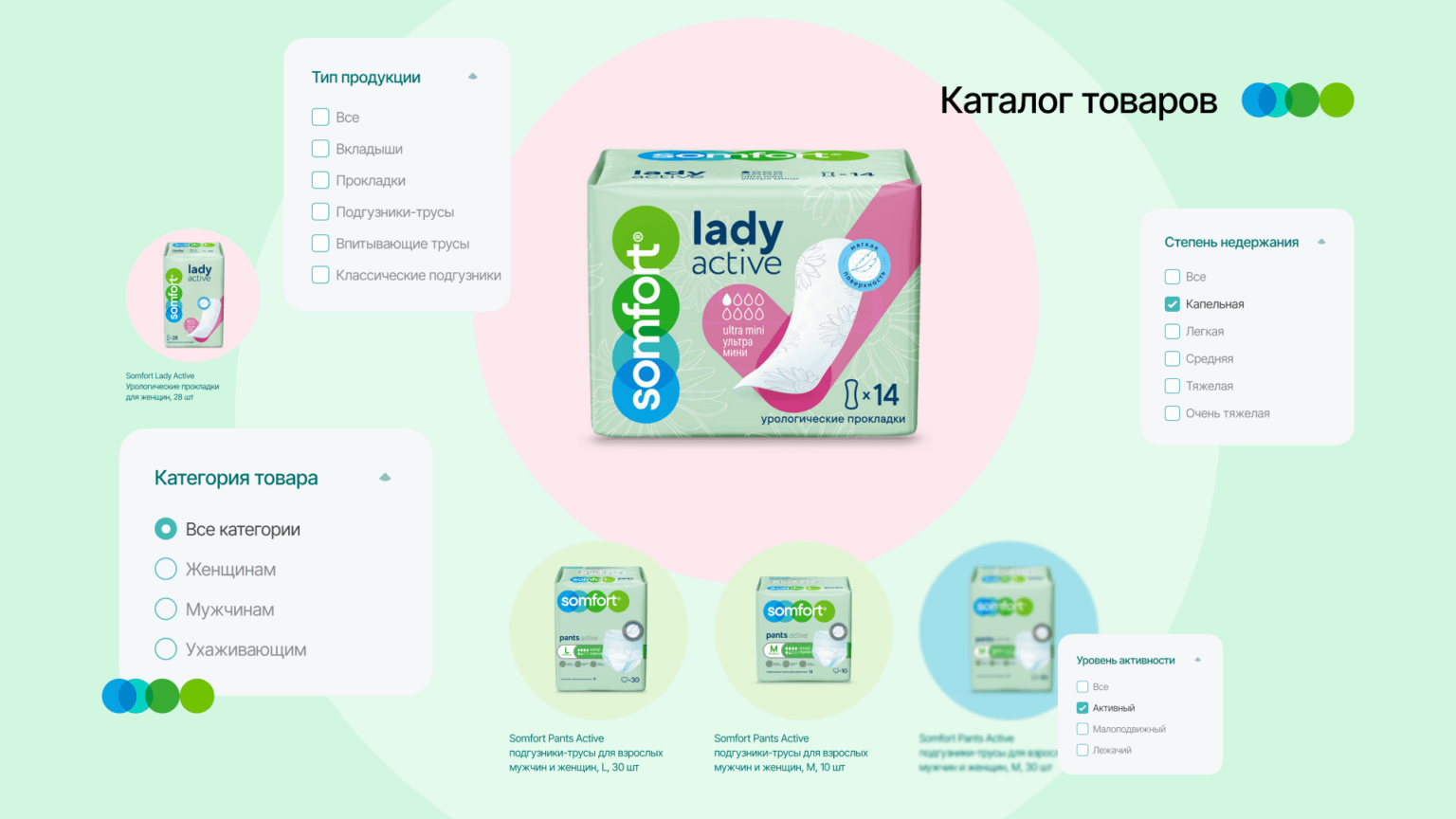 Команда SOMFORT еще до старта тендера проделала колоссальную работу: провела исследование рынка, собрала данные по целевой аудитории и разработала решения для людей с недержанием. Это помогло нам понять продукт и тот опыт, который должен получить пользователь: