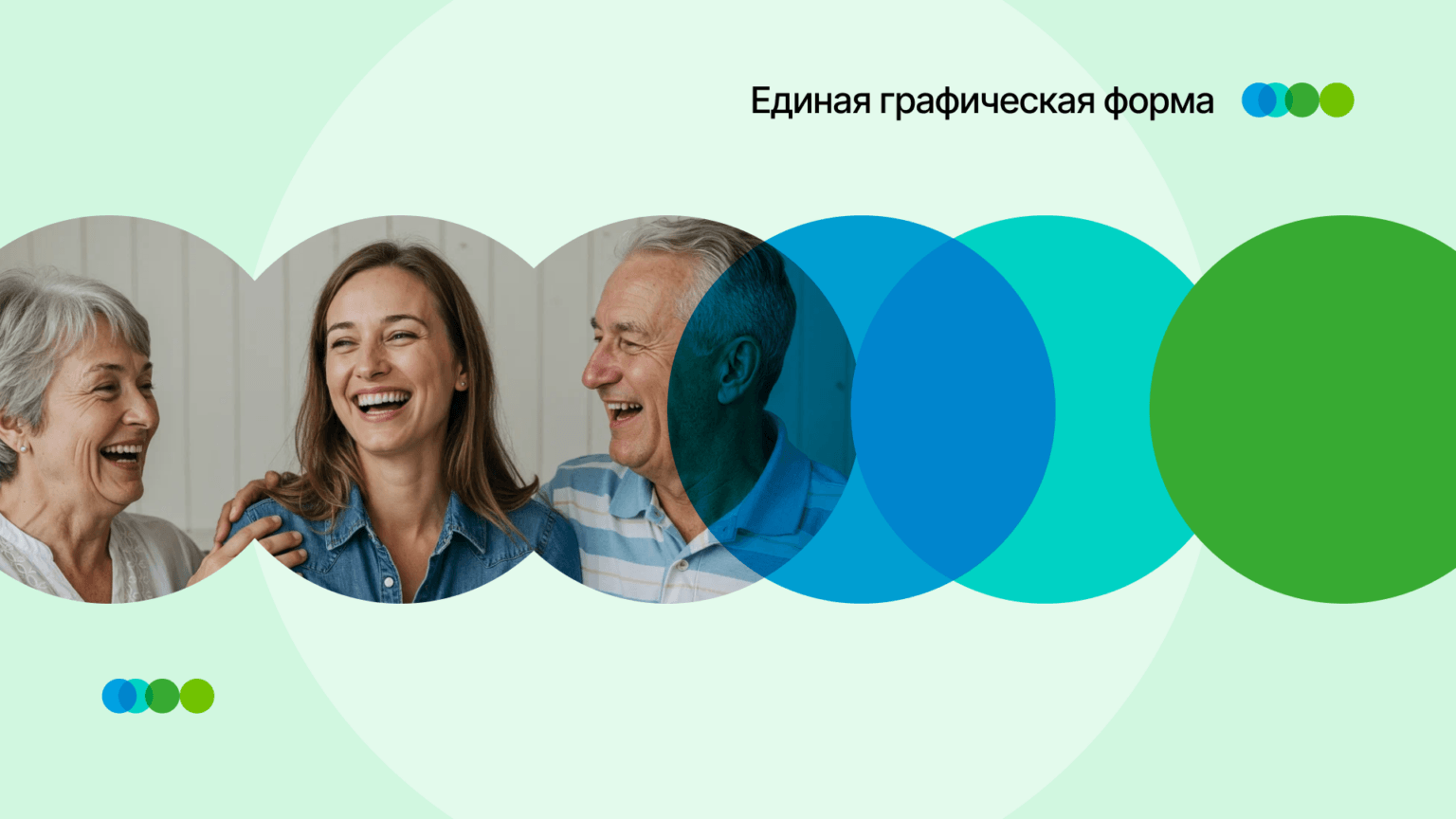 Наверняка к этому моменту вы уже заметили, что многие элементы имеют форму круга. Это не случайно — такой прием сочетается с логотипом клиента и как бы подкрепляет его «обнимающий» эффект. А фото с реальными людьми только усиливают теплый образ бренда.