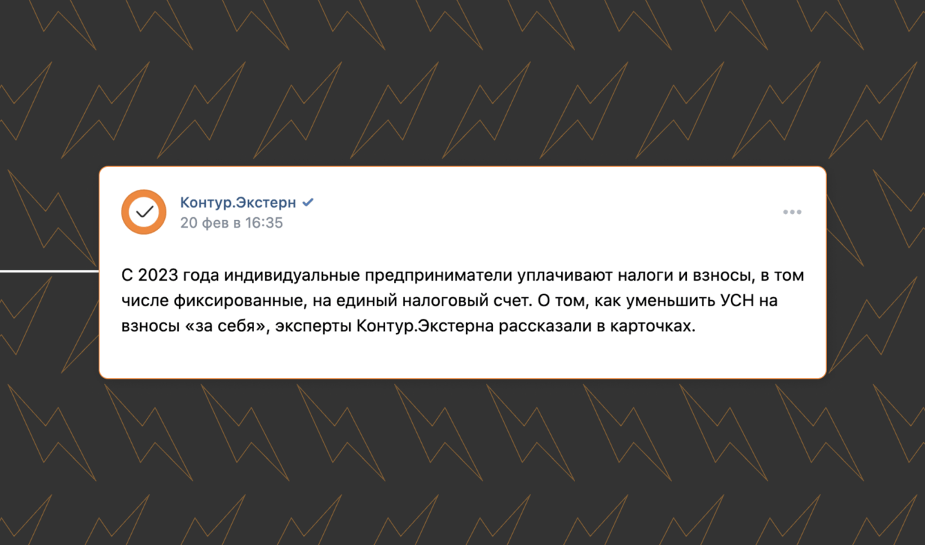 Чтобы доказать экспертность Контур.Экстерн, мы создавали полезные публикации. Каждый пост старались сделать наглядным: использовали инфографики и карточки.