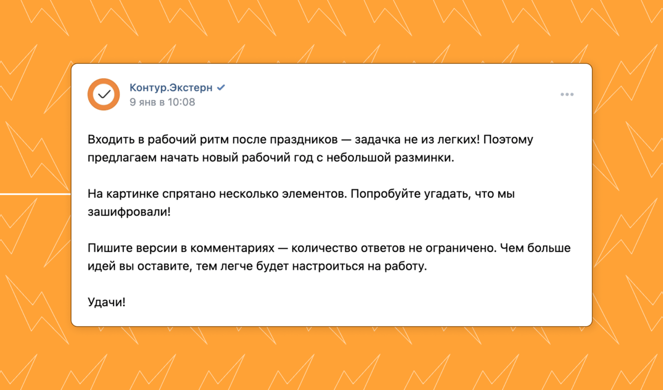 Для поддержания вовлеченности пользователей и формирования комьюнити вокруг продукта, использовали публикации, нацеленные на вовлечение: развлекательные посты, игры и конкурсы.