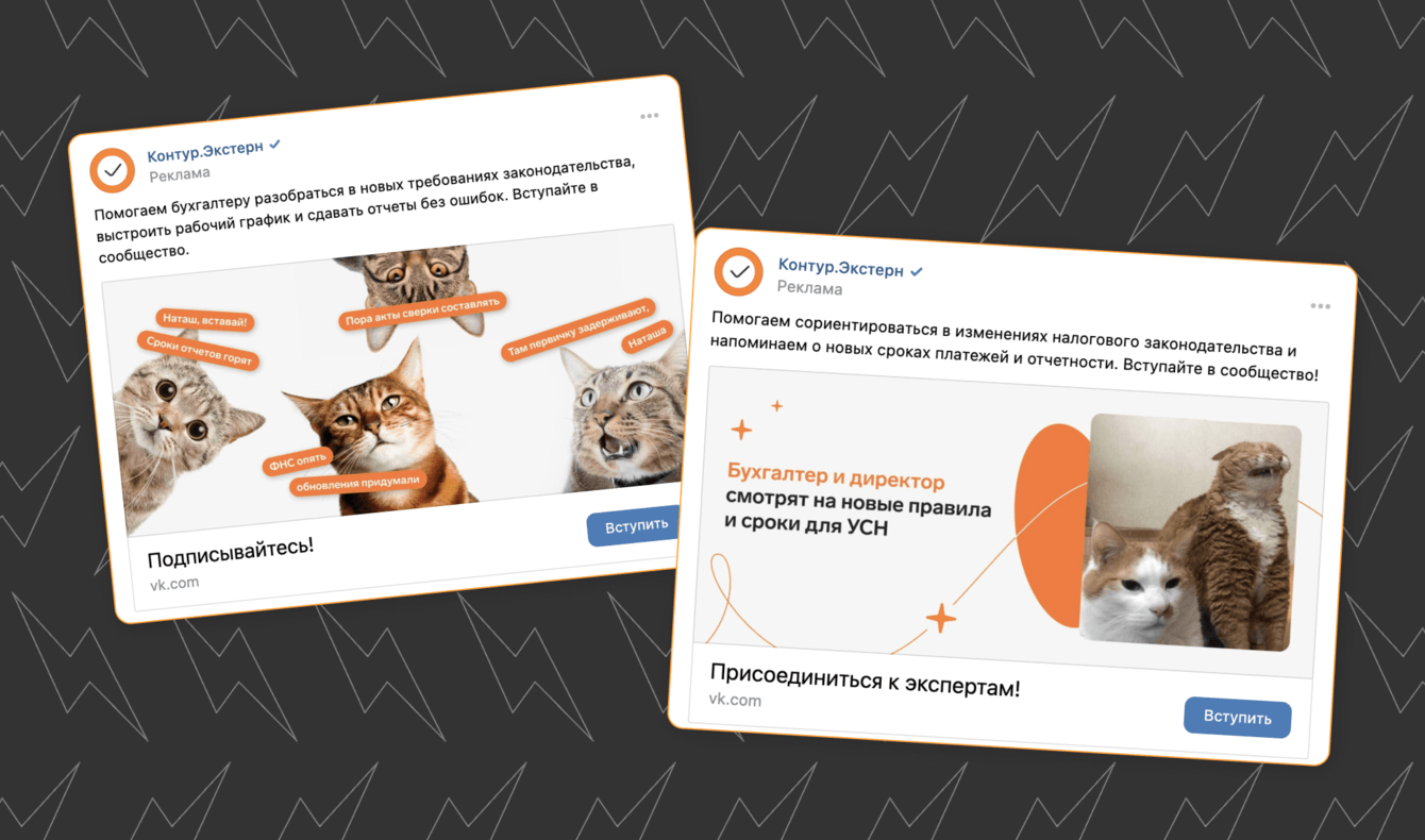 За время ведения рекламной кампании стоимость подписчика снизилась в 3 раза по сравнению со стартом работ. Сделать это удалось за счет постоянного сегментирования аудитории: например, бухгалтера с хорошим чувством юмора видели в ленте рекламу с тематическими мемами, а подписчики конкурентов получали сообщение с главным УТП проекта — онлайн-помощью в сообществе.