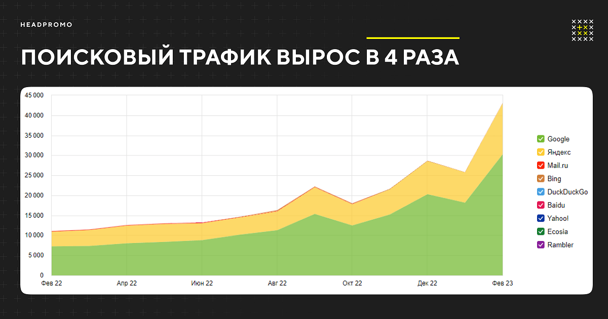 Рост трафика с 11 000 до 43 000 посетителей в месяц