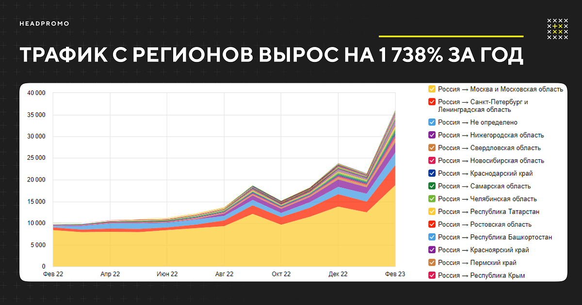 Мы увеличили трафик по регионам до 45% от общего количества, при этом нарастив и объем трафика с Москвы.