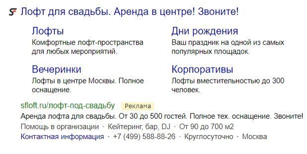 Для продвижения новых площадок были собраны семантические ядра согласно специфике помещения: мы учитывали тип мероприятия, которое можно провести на данной локации, техническое оснащение лофта, расположение объекта, вместительность.