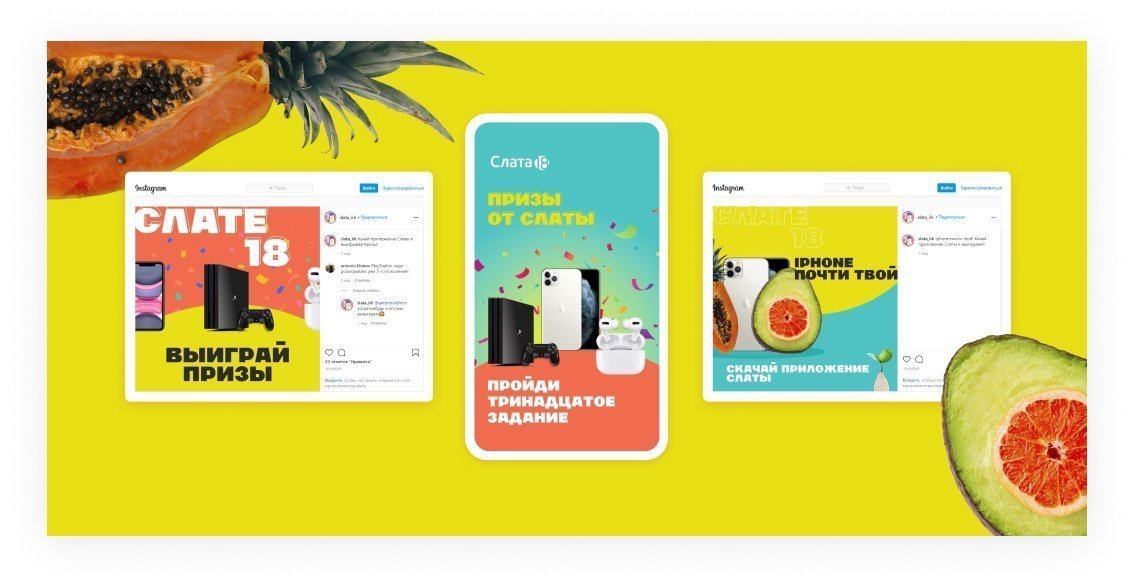 В кампании по привлечению новых клиентов использовались яркие образы и офферы, направленные на пробуждение интереса к квесту и демонстрацию призов. Реклама вела на главную страницу сайта, на которой пользователь мог получить всю необходимую информацию о квесте и празднике «Слаты».