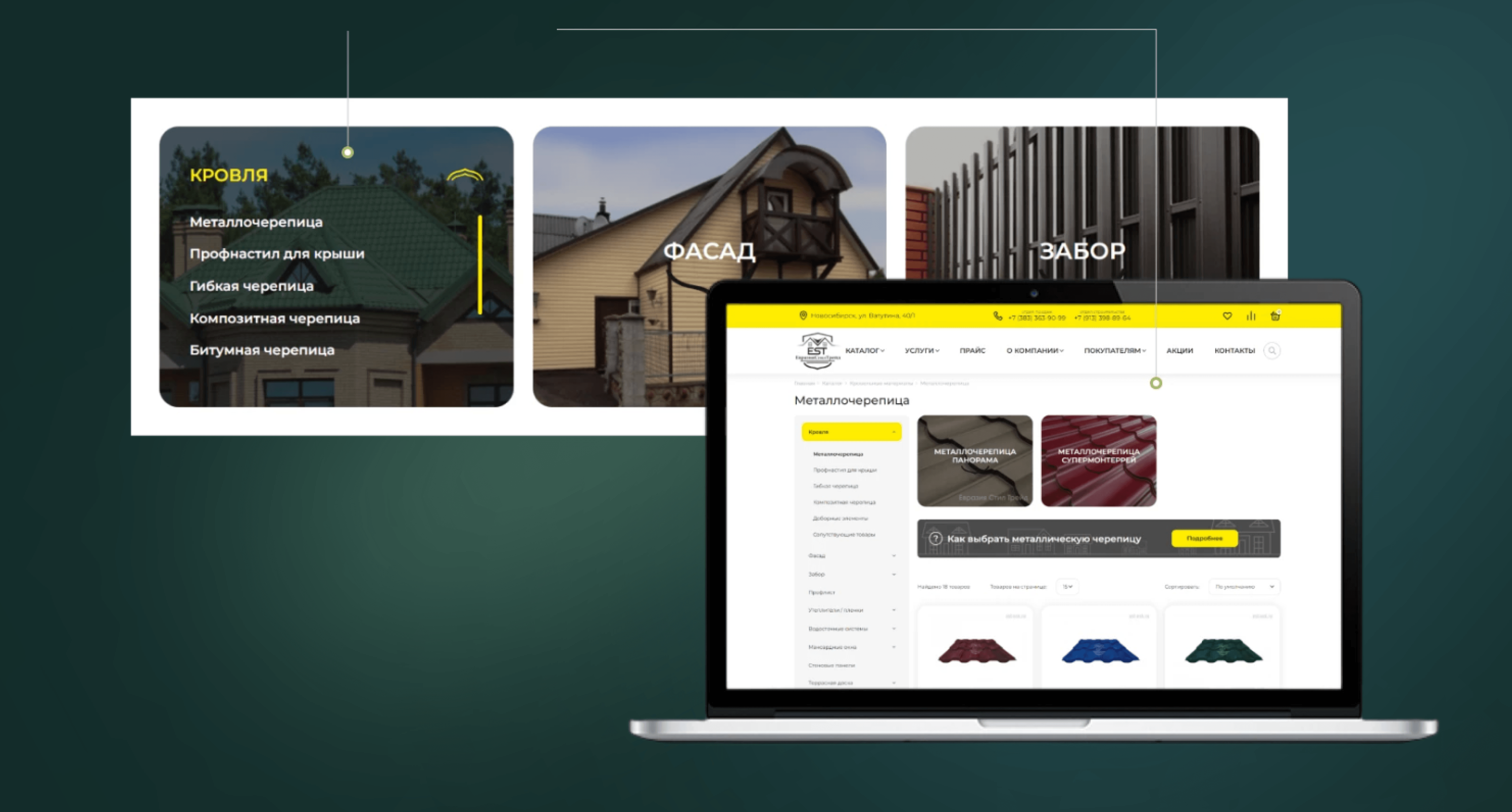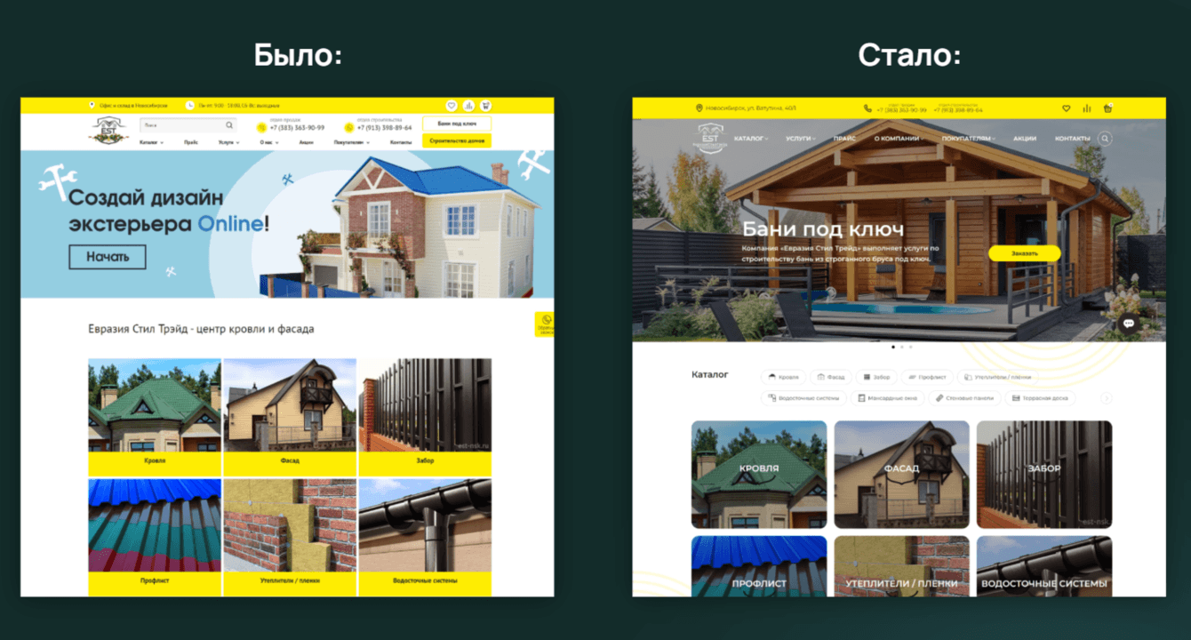 - Сделали блоки с каталогом и услугами более компактными, интересными визуально;