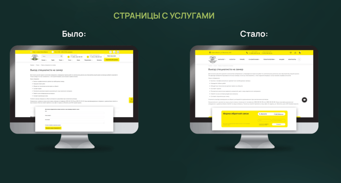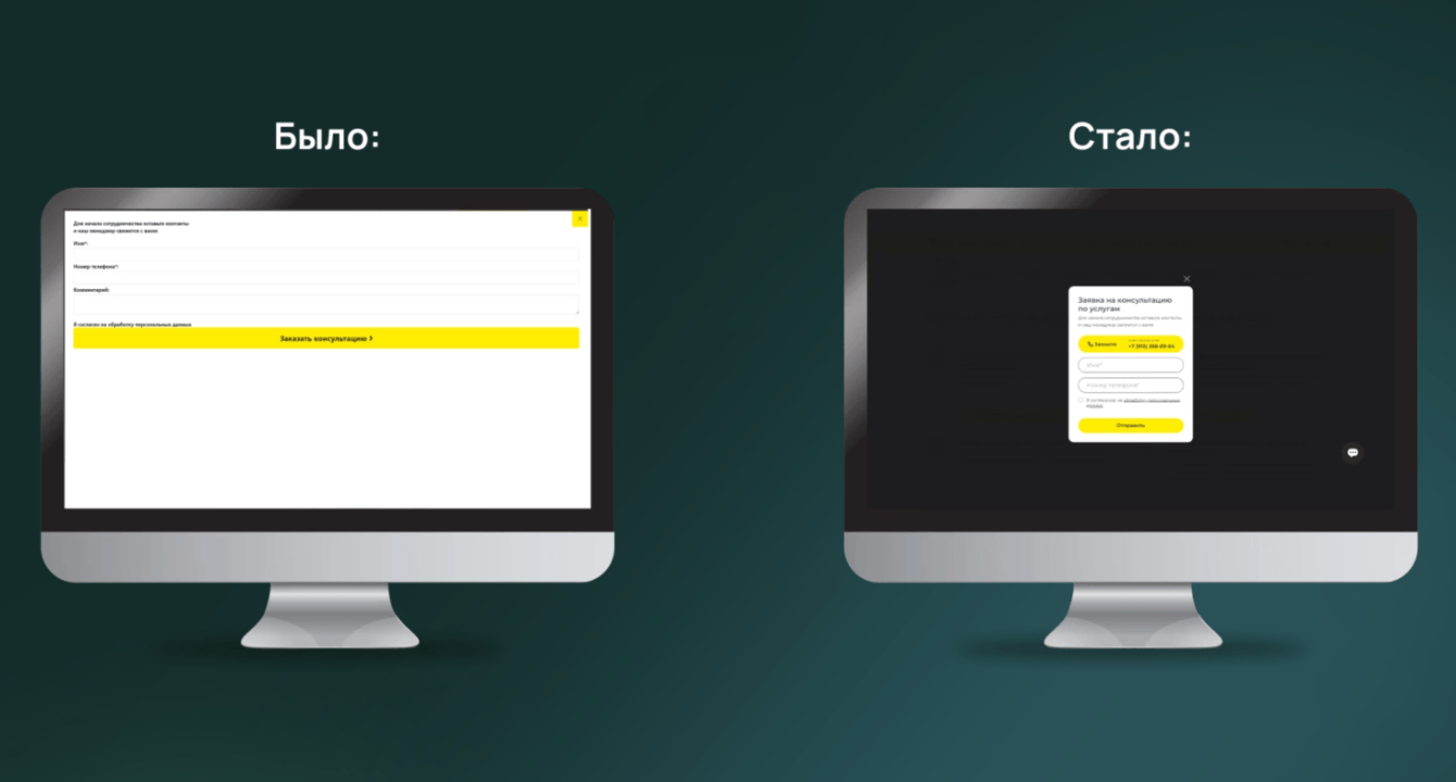 - Сделали заметную, яркую форму обратной связи сразу с телефоном для звонка;