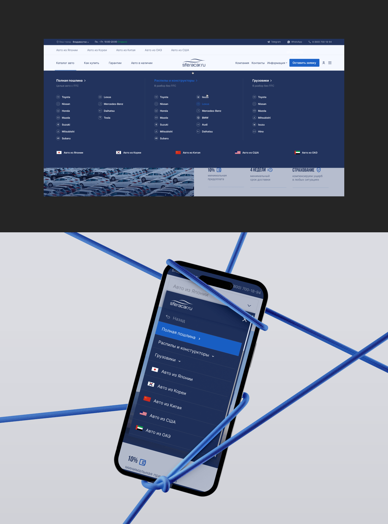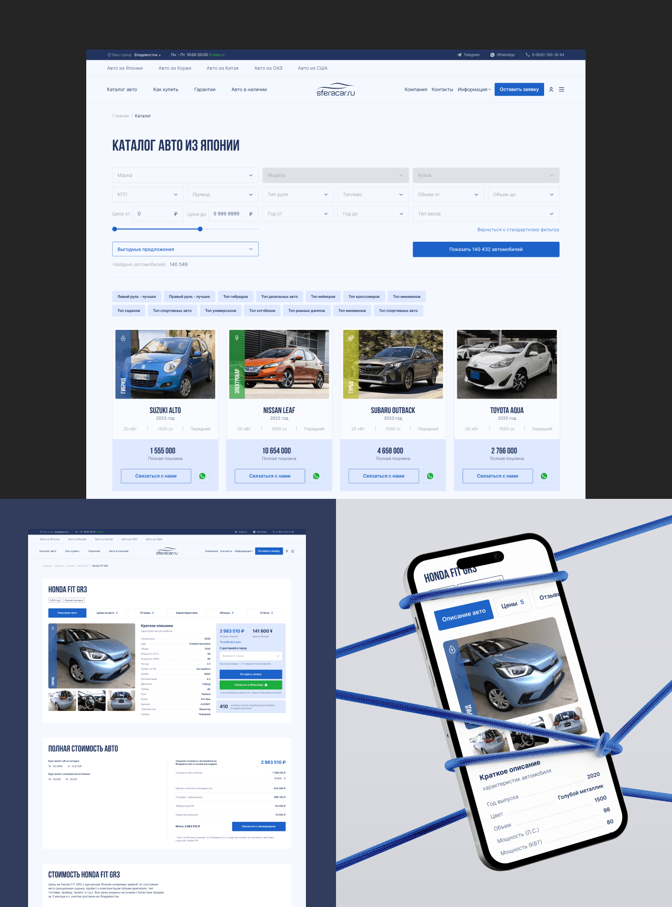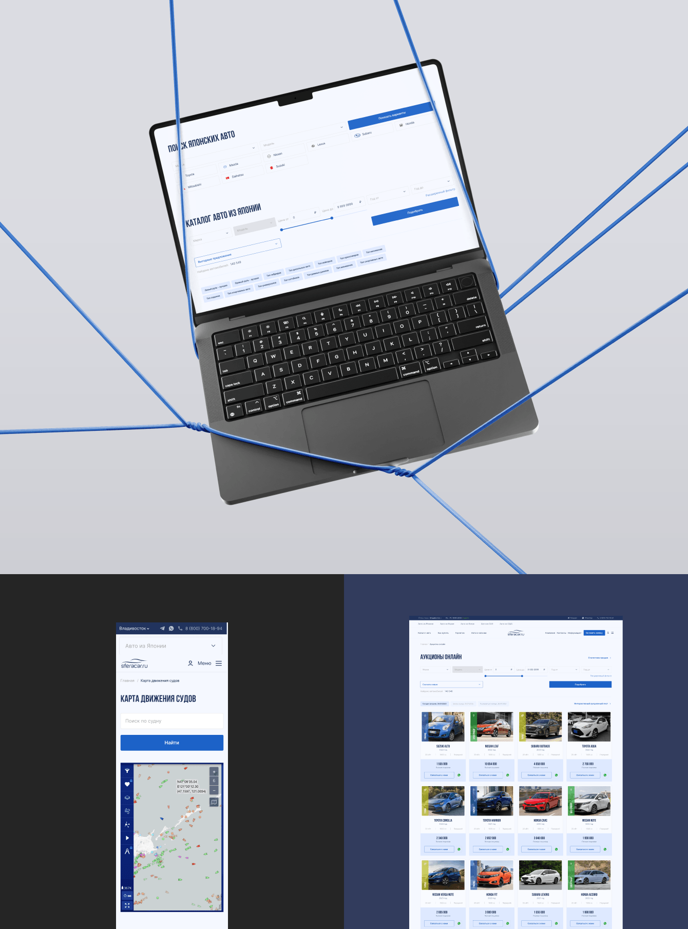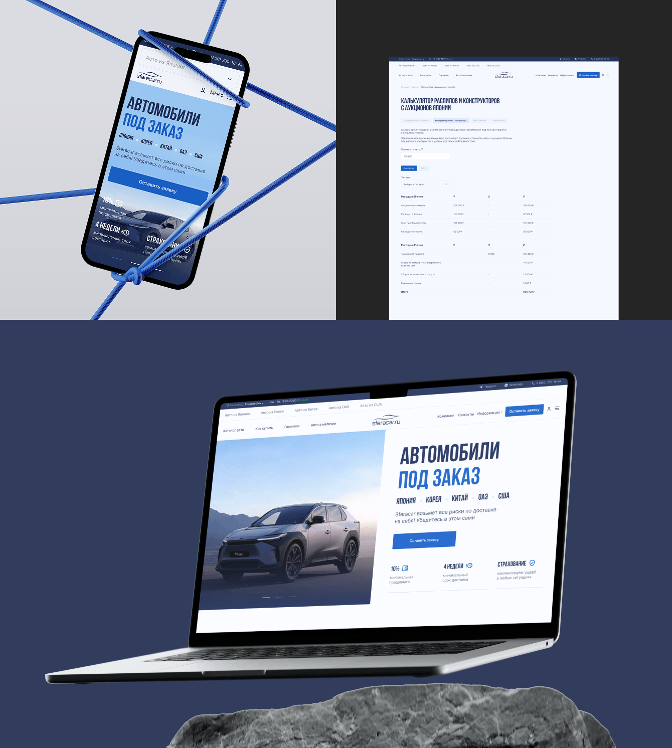 Разработка сайта с уникальным дизайном на платформе для подбора автомобилей из Японии, Китая и Кореи с интеграцией каталога через API.