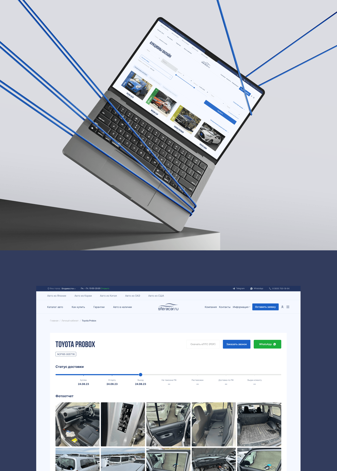 Разработка сайта с уникальным дизайном на платформе для подбора автомобилей из Японии, Китая и Кореи с интеграцией каталога через API.