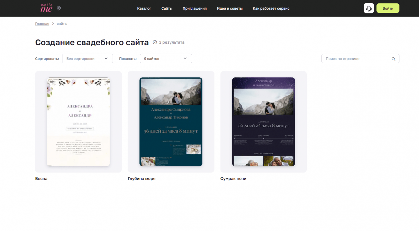Дизайн и разработка сервиса для организации мероприятий и свадеб.
