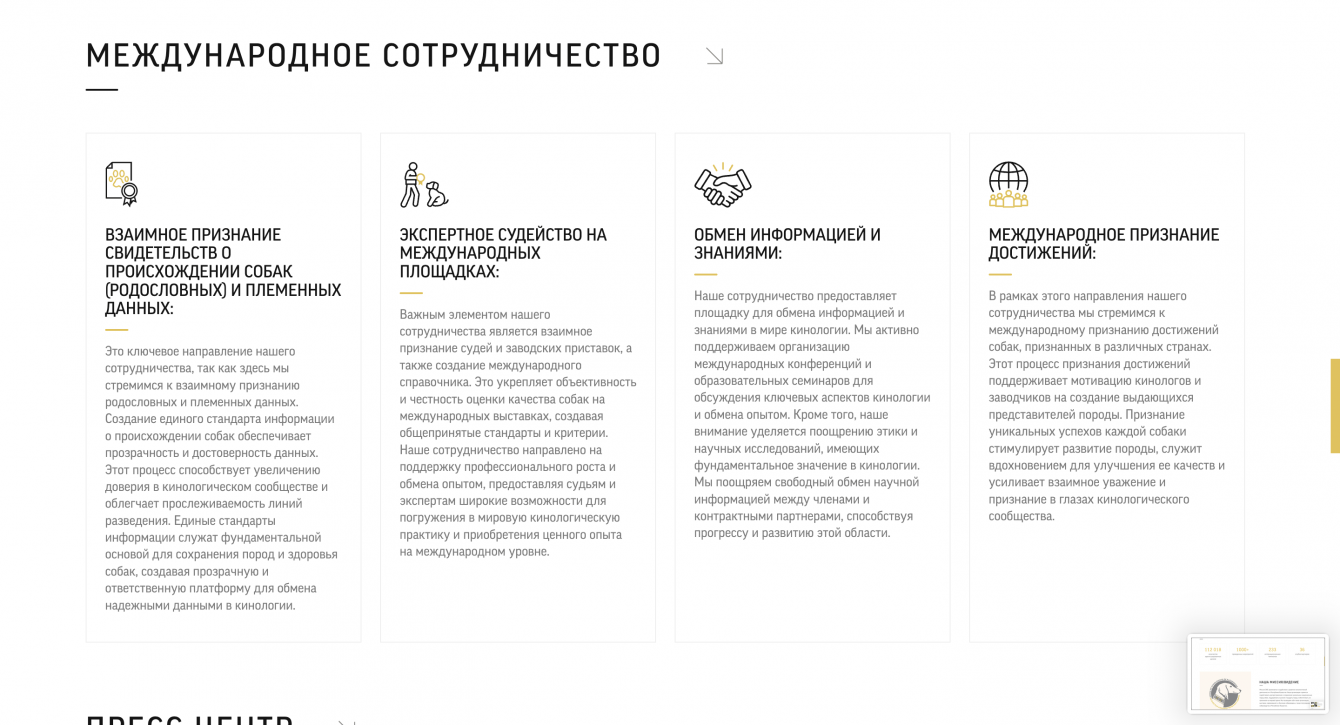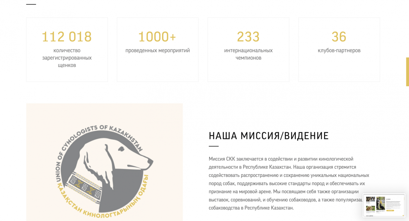 1. Успешный перенос на новую CMS: Веб-сайт "Союза кинологов Казахстана" успешно перенесен на новую платформу управления контентом (CMS), что обеспечивает более гибкое управление содержанием и функциональностью сайта.