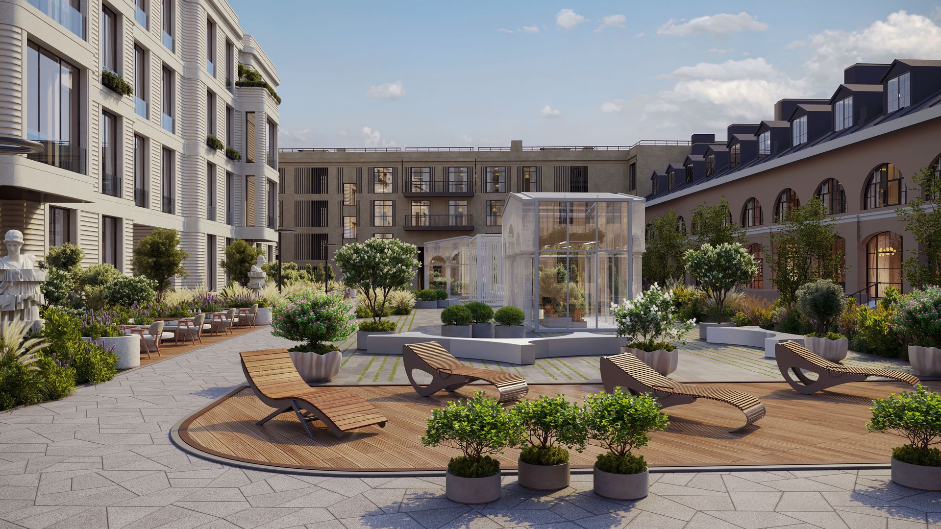 Респектабельное пространство гармонично соединит реконструкцию объекта культурного наследия «Мытный двор» и новое строительство в неоклассическом стиле.