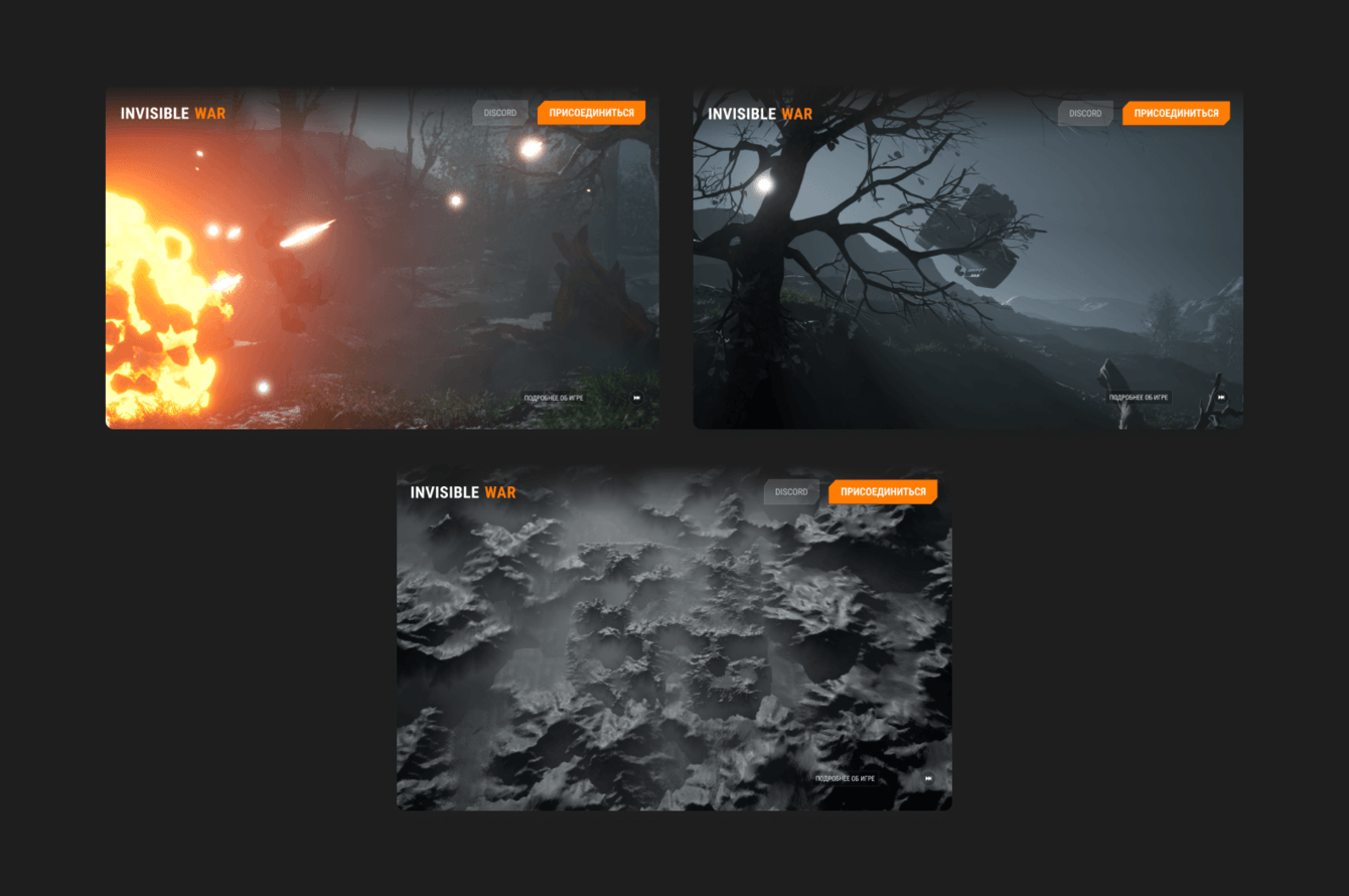 Заказчик остался доволен результатом. Проект мы завершили недавно, и пока рано говорить о результатах, но уверены, что лендинг может привлечь к игре Invisible war интерес геймеров.