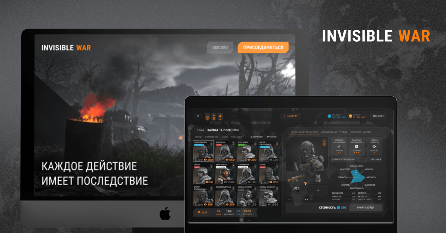 Invisible War — это онлайн-стратегия в открытом мире, где игроки создают частные военные компании, управляют ими и сражаются с ЧВК соперников за контроль над территориями.