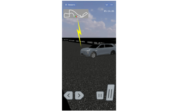 Детализированная 3D-модель трассы также включает реалистичные текстуры: асфальта, травы и неба для полного погружения. Интерактивные барьеры с логотипом бренда останавливают автомобиль при столкновении, влияя на движение.