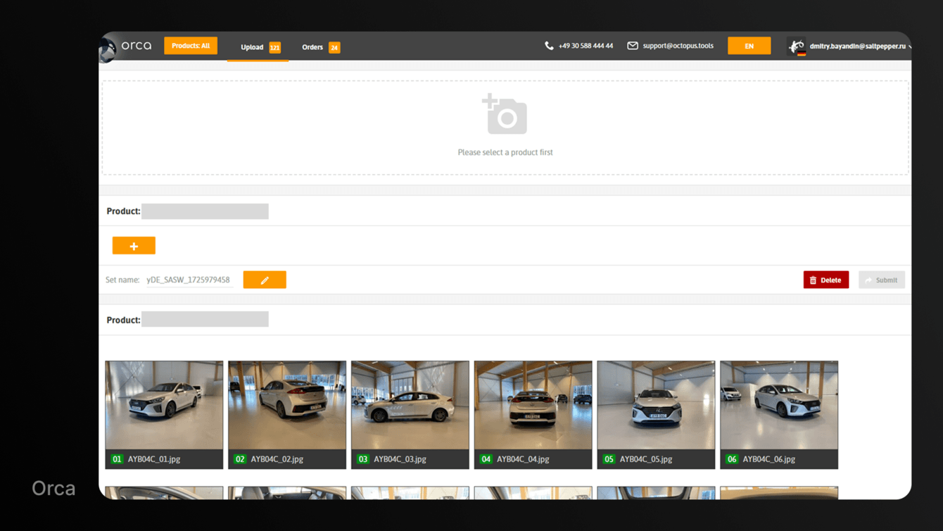 Orca — веб-интерфейс с сетапами. Сервис позволяет загружать фото с выбором настроек для ручной или автоматической обработки. Но сервис не решал главную проблему: дилерам все еще приходилось нанимать фотографов, что бьёт по карману. Поэтому мы сделали Piranha.