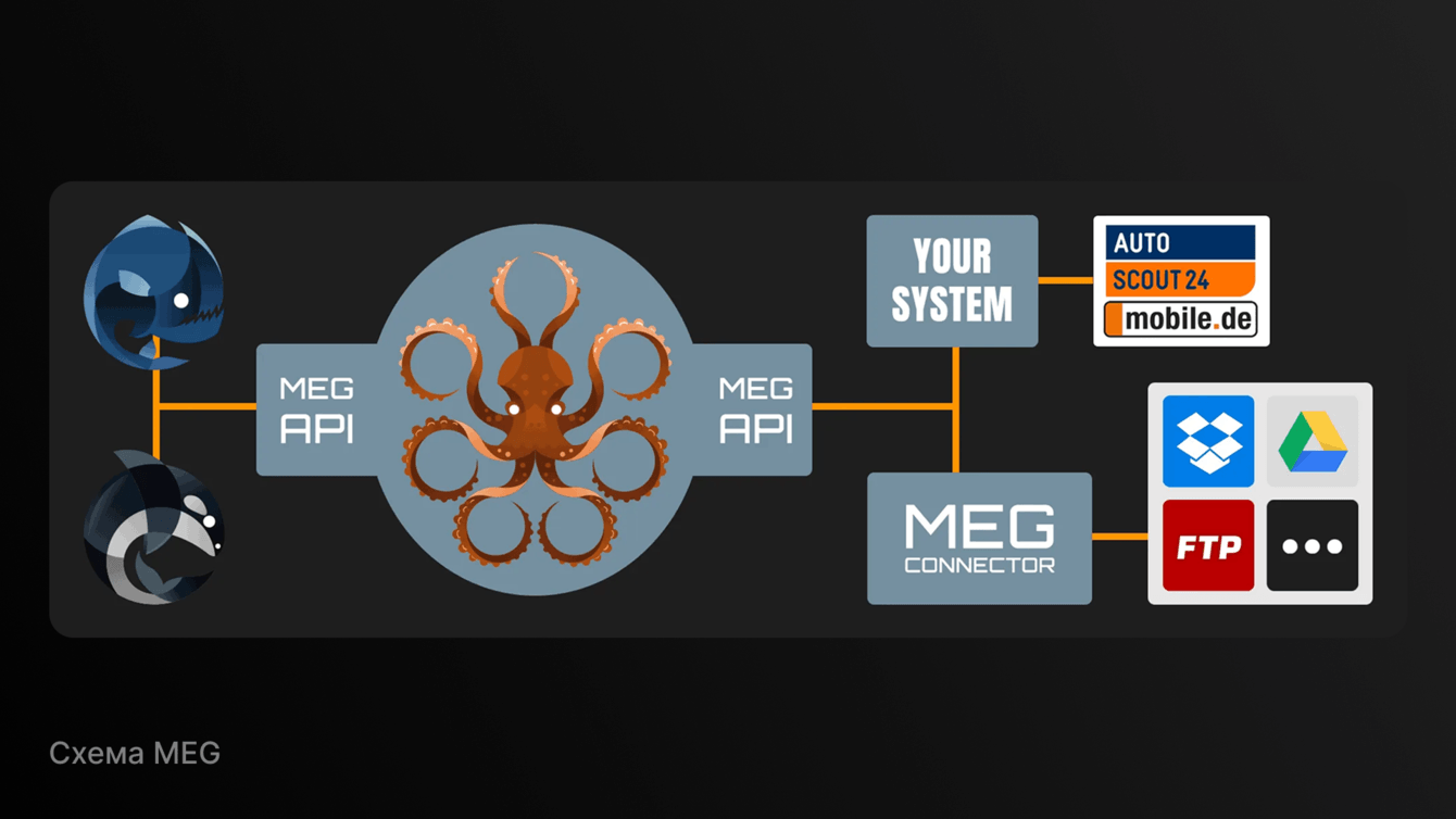 MEG нужен, чтобы автоматизировать передачу изображений из базы в экосистему yoozoo: так, например, фотографии автодилеров сразу уходят на ретушь, без ручных операций и ошибок.
