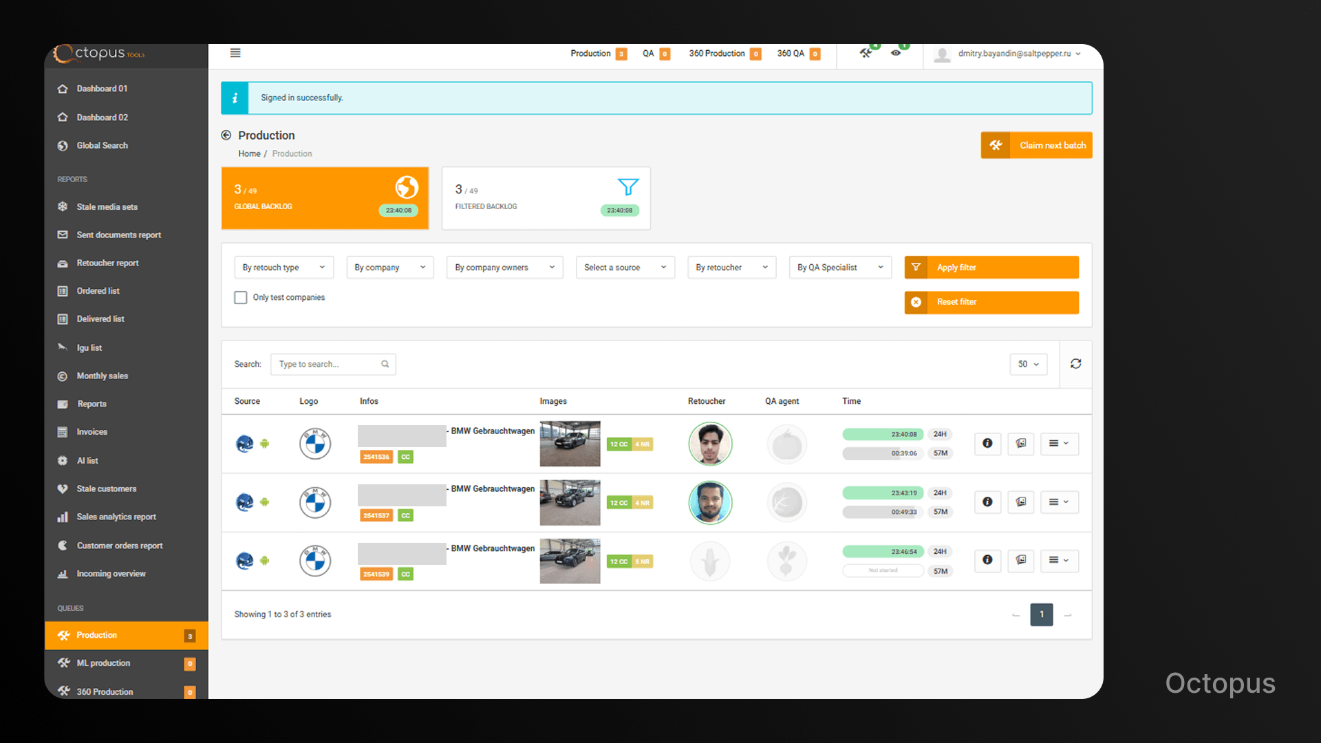 Octopus — ядро всей системы. Здесь менеджеры создают и настраивают сетапы для клиентов, ретушёры обрабатывают фотографии вручную (сейчас их уже почти заменил AI), а QA-агенты проверяют качество.