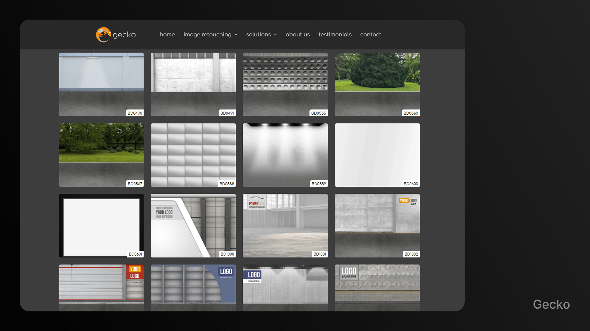 Gecko позволяет клиентам создавать собственные шаблоны для ретуши: выбирать фон, логотип и ракурс.