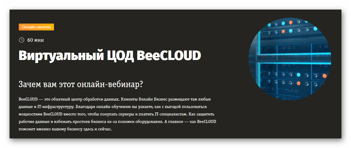 Билайн Бизнес проводит онлайн-занятия для своих действующих и потенциальных клиентов. В основе каждого занятия лежит один из продуктов Билайн Бизнес: например услуга управляемого Wi-Fi, комплекс решений «Мобильное предприятие» или платформа для поиска клиентов «Билайн.ПРОдвижение». Спикеры рассказывают, как с помощью этих продуктов решить задачи и трудности бизнеса: привлечь больше клиентов, сократить расходы, эффективно управлять командой.
