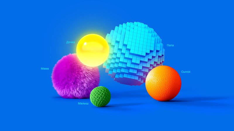 Мы изменили логотип, намного улучшив считываемость, сделав его более современным и динамичным, легко адаптирующимся к любым форматам. Вдохновившись ценностями телеканала и переосмыслив элементы логотипа, мы разработали концепты персонажей, которые все вместе создали веселую семью из шариков. Каждый из них отражает характеры членов семьи: мягкая пушистая мама, твердый «пиксельный» папа, «светящаяся» дочка, суперактивный сын-попрыгун и малыш, который пока только раздумывает над своим местом в этом мире. Отношения между этими героями дают безграничные возможности для диалога с маленькими зрителями: можно легко, весело и наглядно объяснять самые разные ситуации, которые могут произойти в жизни.