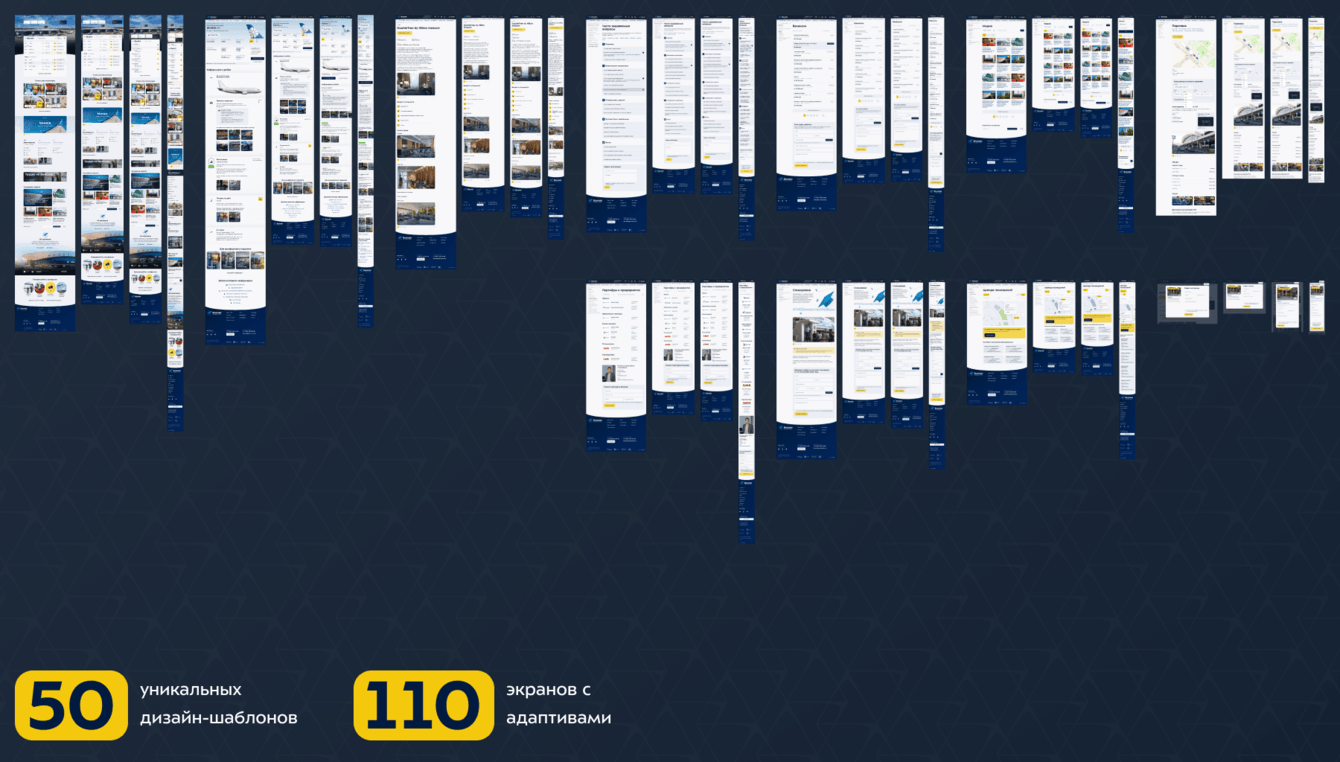 Пассажиры будут активно пользоваться сайтом с мобильных, пока едут в аэропорт или отдыхают в зоне ожидания. Мы сделали 110 экранов с адаптивами, чтобы он был удобным на любом устройстве — смартфоне, планшете, ноутбуке с разными экранными разрешениями.