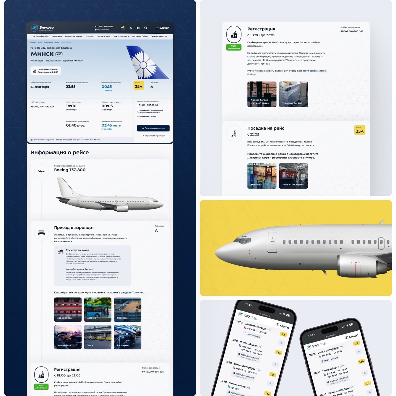 Мы провели исследование: расписали сценарии использования сайта и прошли их на 60 сайтах аэропортов чтобы вывести бенчмарки. Из анализа вывели бенчмарки — эталонные решения, которые адаптировали для сайта аэропорта Внуково.