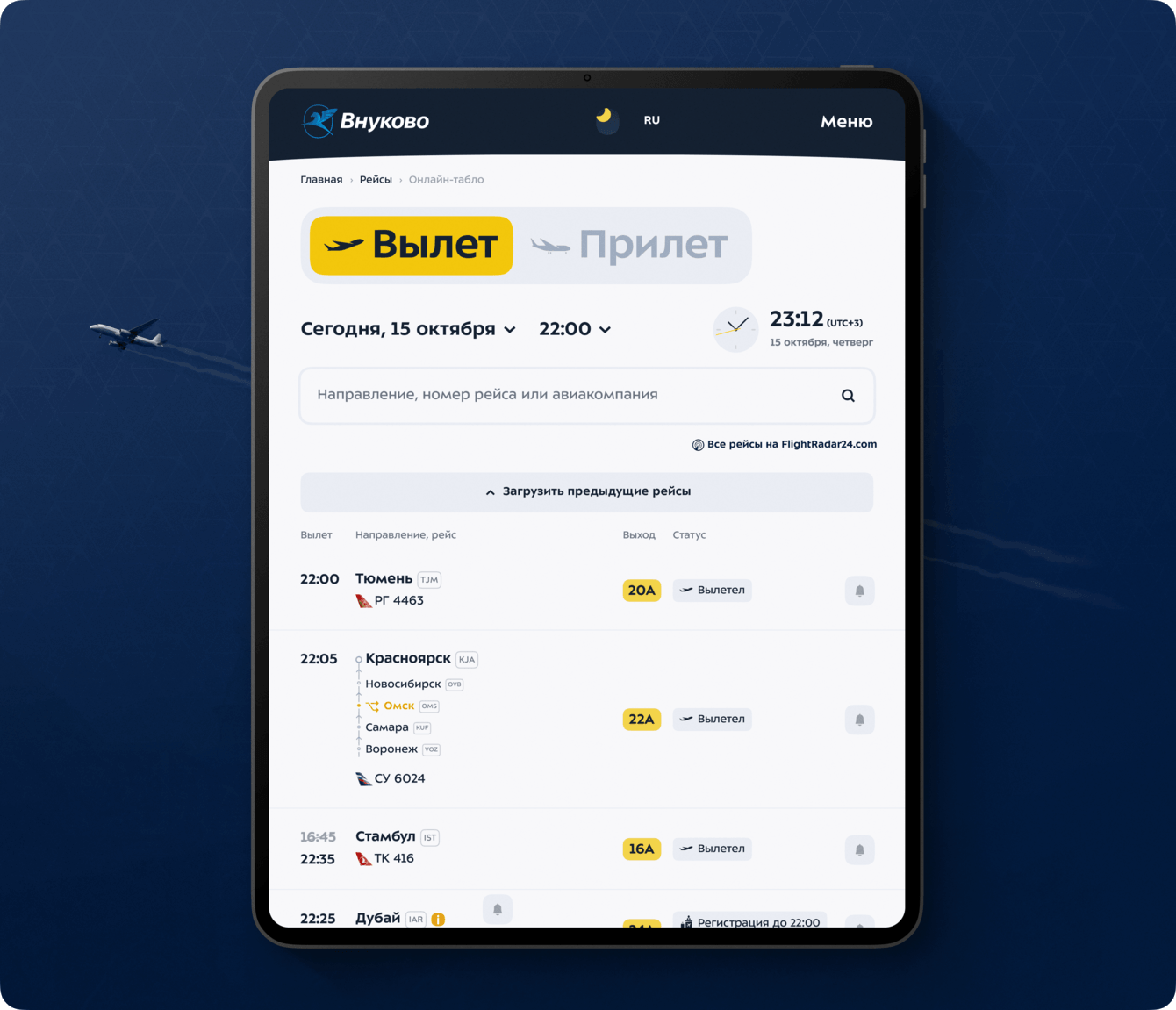 — Нативное онлайн-табло, заменяющее табло в аэропорту.