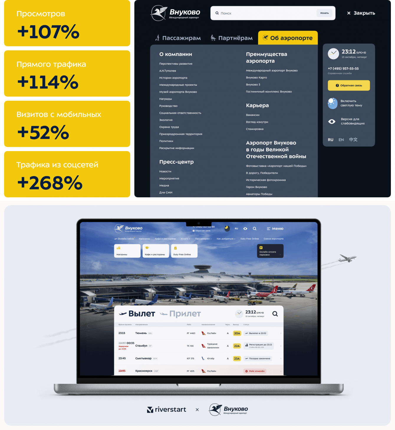 Сайт Внуково — это аэропорт онлайн. Пассажиру достаточно сайта, чтобы понять, куда идти и что делать: