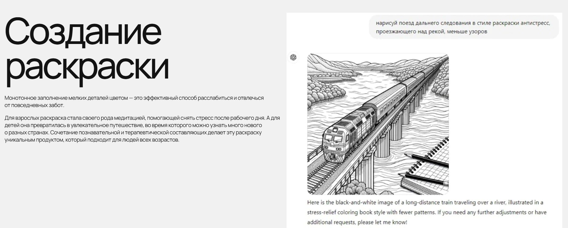 💡 Наша цель — не просто предложить продукт, а предоставить клиенту комплексное решение, которое полностью удовлетворит все его потребности. Благодаря слаженной работе команды, клиент вовремя получил готовую раскраску и остался доволен результатом.