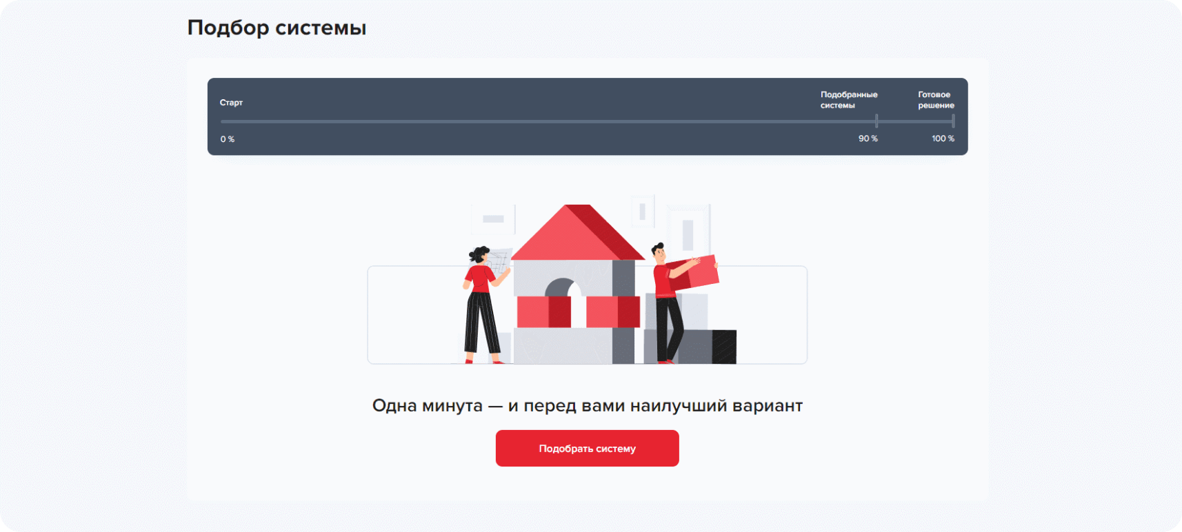 Разработали простой и интуитивно понятный подбор готовых решений для кровли, фасада и фундамента с возможностью генерации PDF и сравнения оптимальных вариантов.