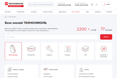 2. Разместили на сайте Базу знаний Корпорации ТЕХНОНИКОЛЬ, включающую более 2 000 статей от 50 авторов.