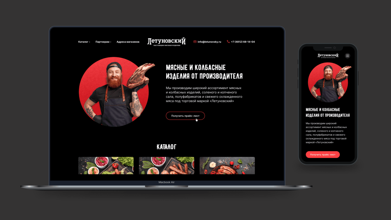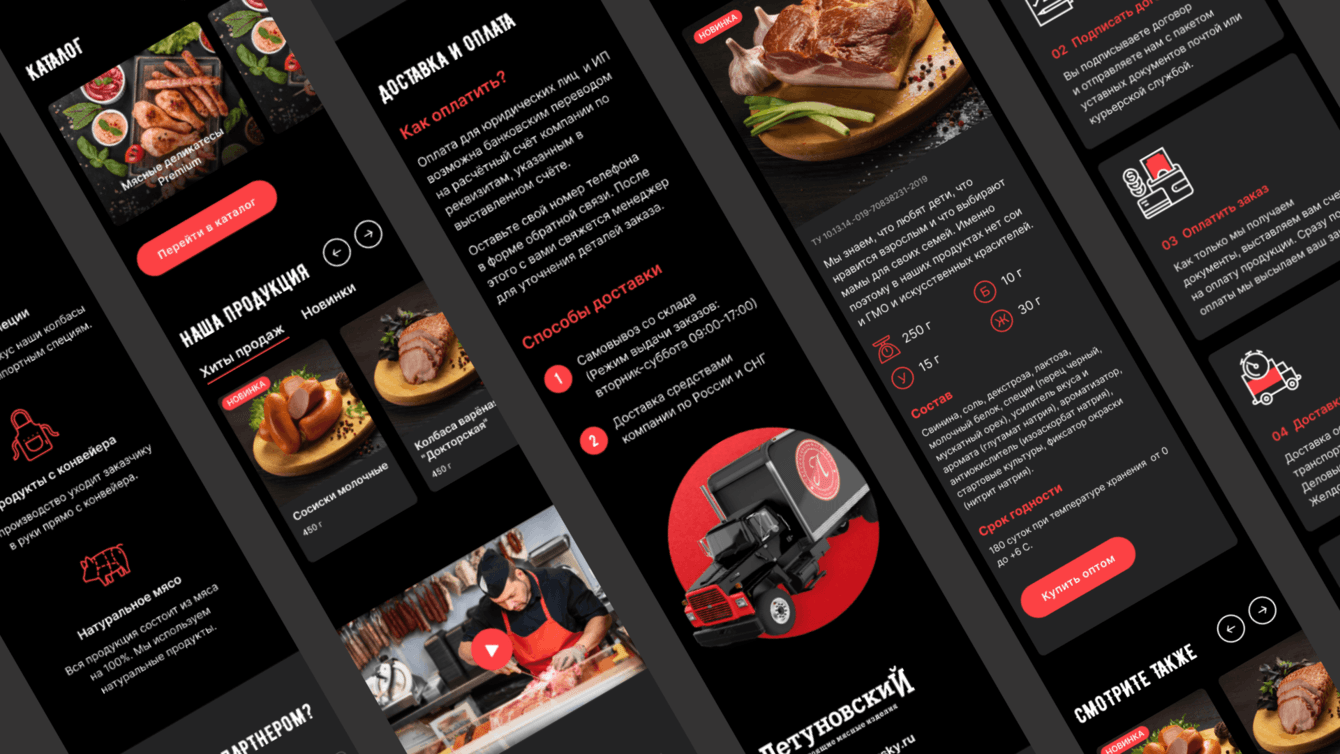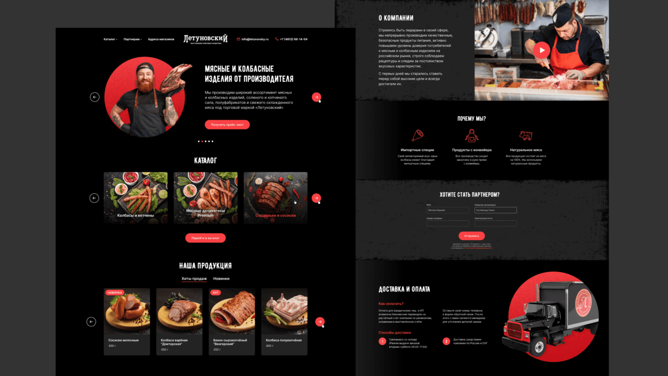 Мы создали очень эстетичный и брутальный сайт про мясные и колбасные изделия.