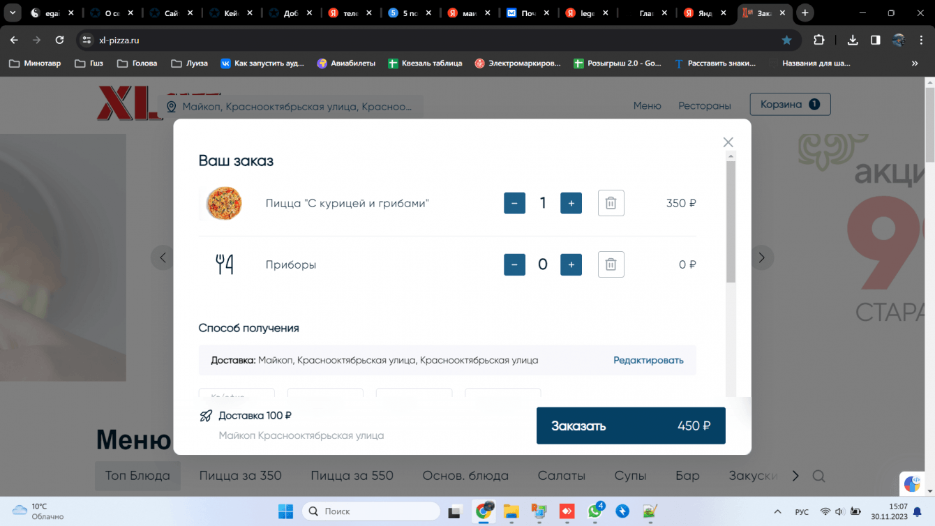 Создать сайт для автоматизации и оптимизации заказов в доставку сети ресторанов