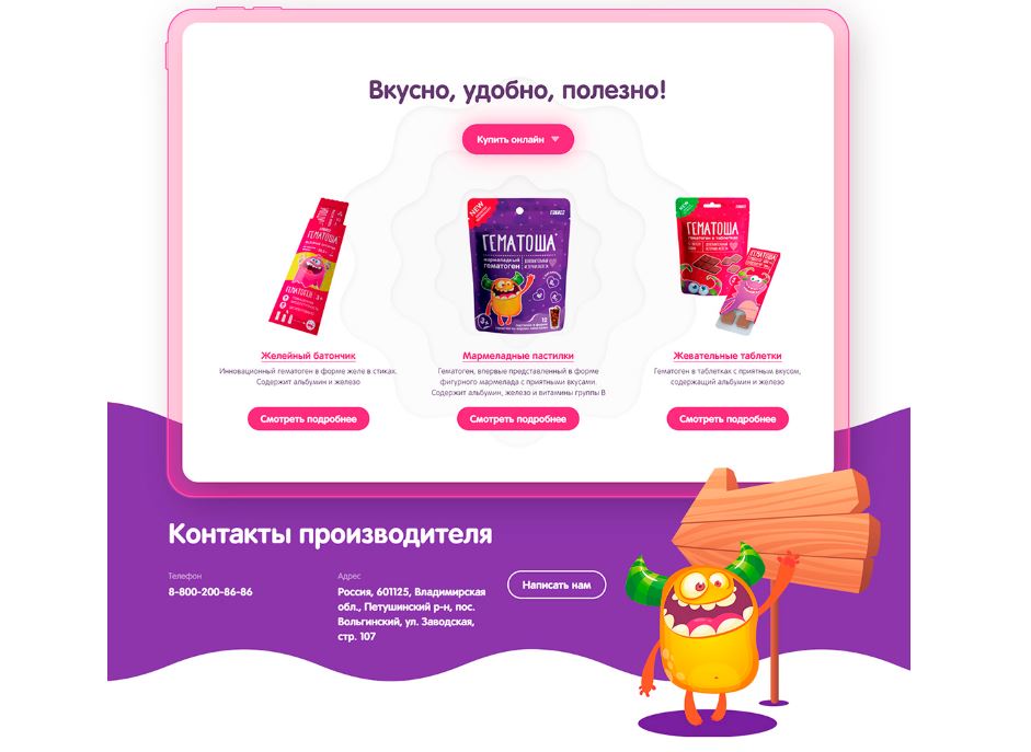 Для нас важна не только функциональная составляющая сайта, но и его визуальное оформление. Сайт "Гематоша" выражает все прелести и краски своего товара)