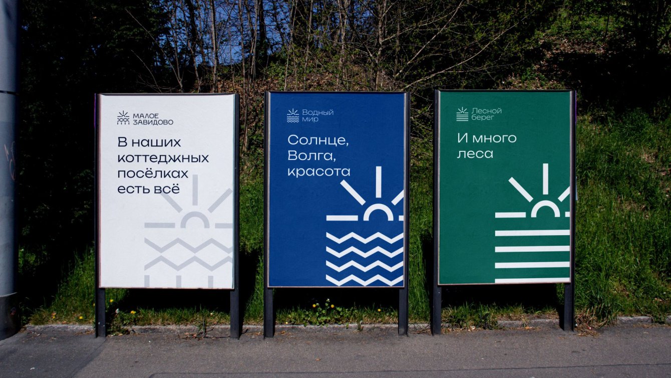 Нам нужно было создать не просто уникальный стиль для одного посёлка Малое Завидово Лесной берег, но и обеспечить возможность дальнейшего концептуального развития для зонтичного бренда, учитывая планы на создание новых посёлков в будущем.