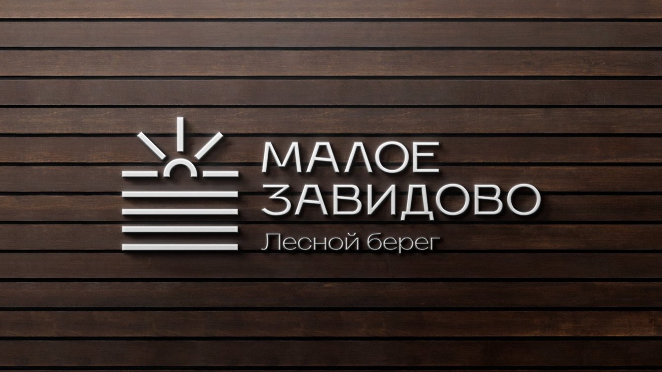 Клиент оценил дизайн, но попросил сделать акцент на словах «Малое Завидово», а «Лесной берег» предложил перенести в дескриптор. Кроме того, заказчик упомянул, что в посёлке планируется открытие гольф-клуба, яхты и конные прогулки, что можно было бы отразить в логотипе.