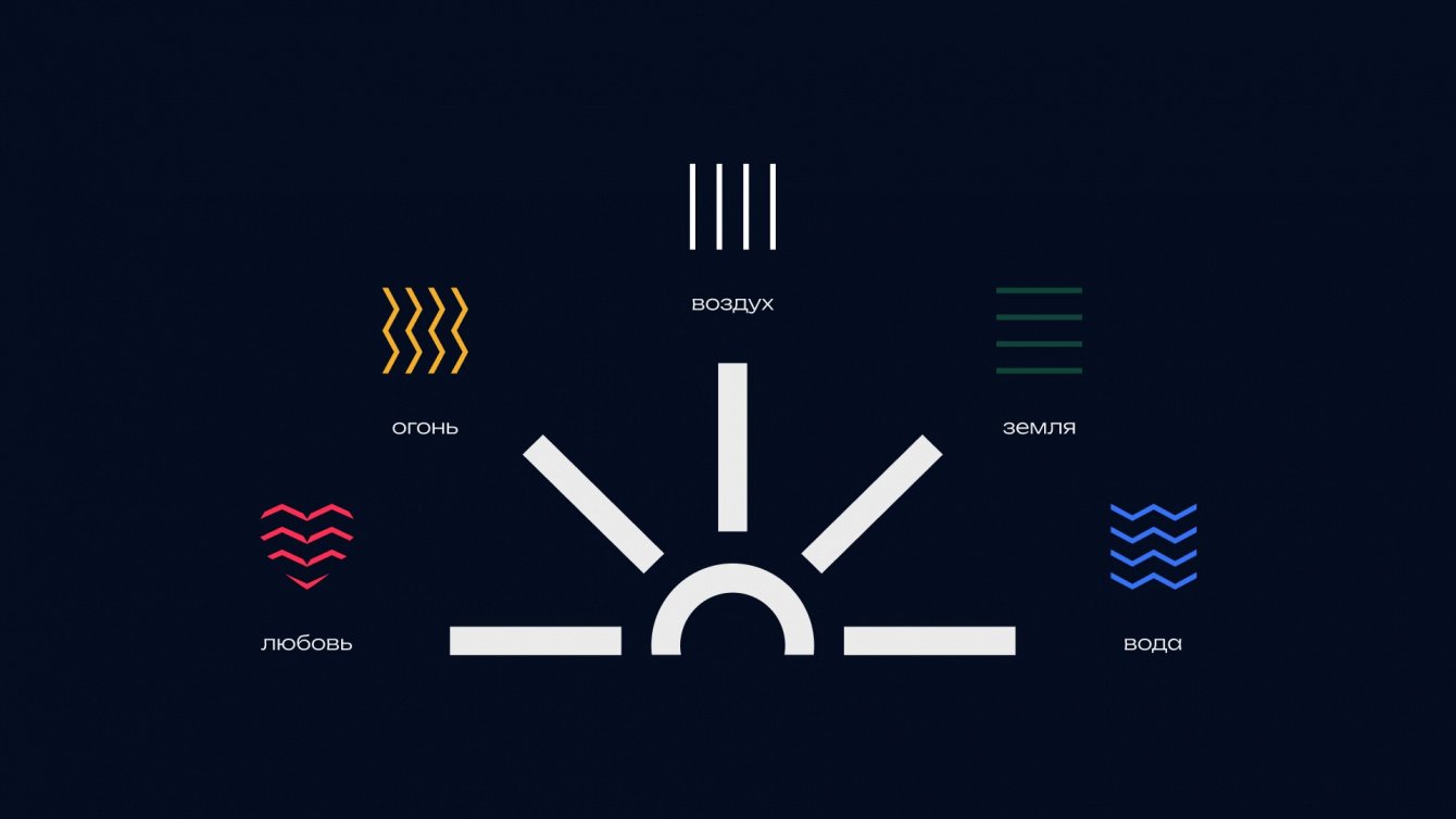 Однако после согласований клиент неожиданно присмотрелся к четвёртому варианту, но попросил его немного доработать. Мы убрали несколько лучей из солнца, чтобы их стало ровно пять, и добавили очертания домов к стихии воды. Этот вариант стал основным логотипом, от которого мы в дальнейшем развивали фирменный стиль.