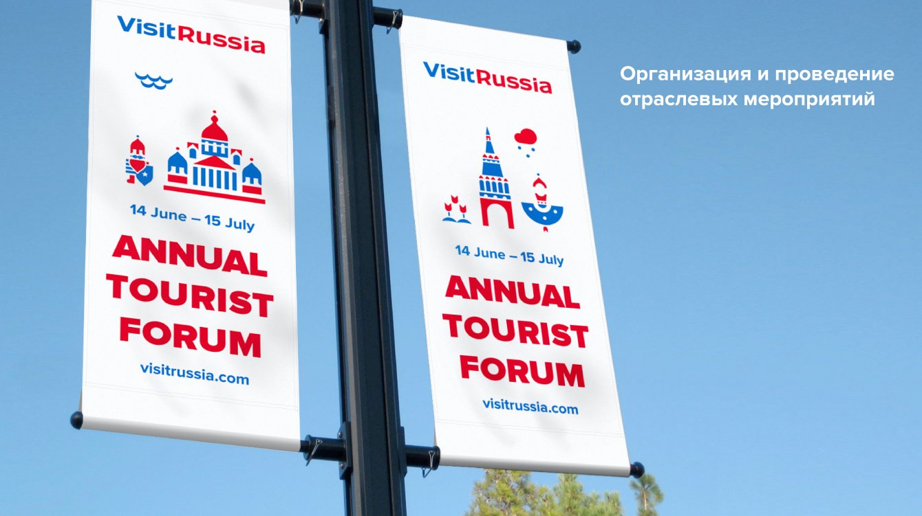 Разработанный фирменный стиль также может быть использован для оформления специальных мероприятий (форумов, конференций и прочего), проводимых под эгидой Visit Russia.