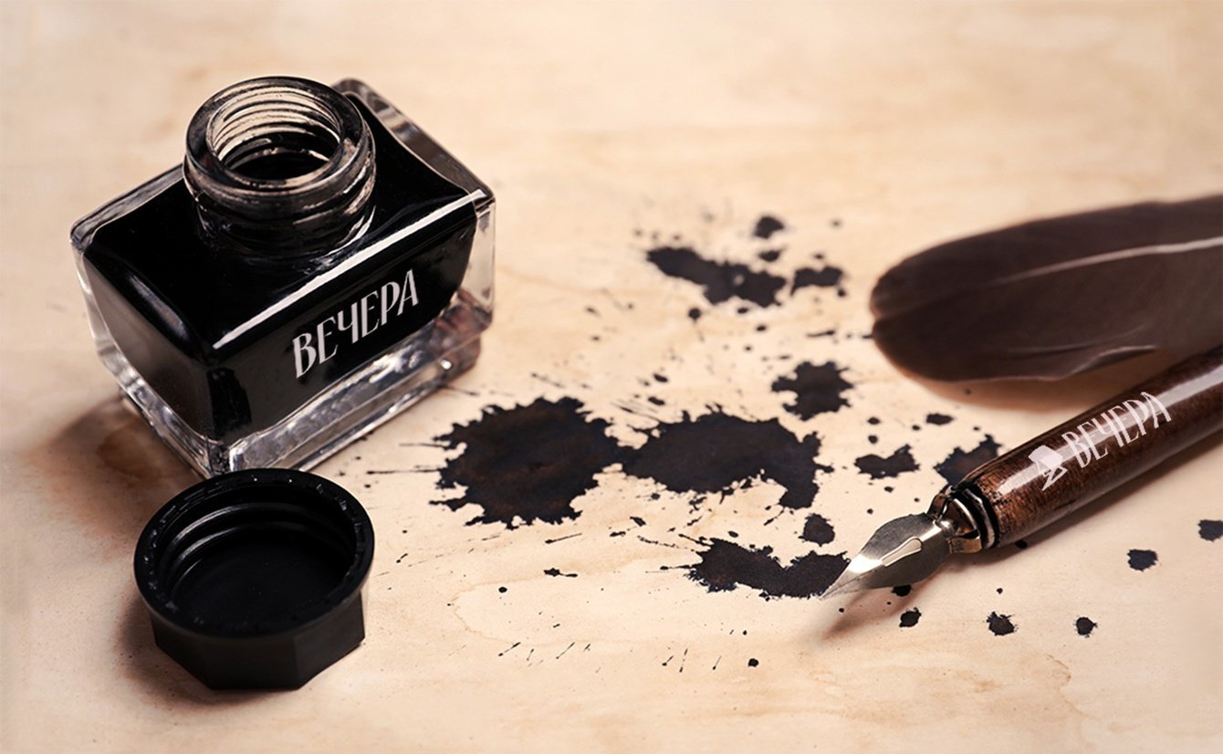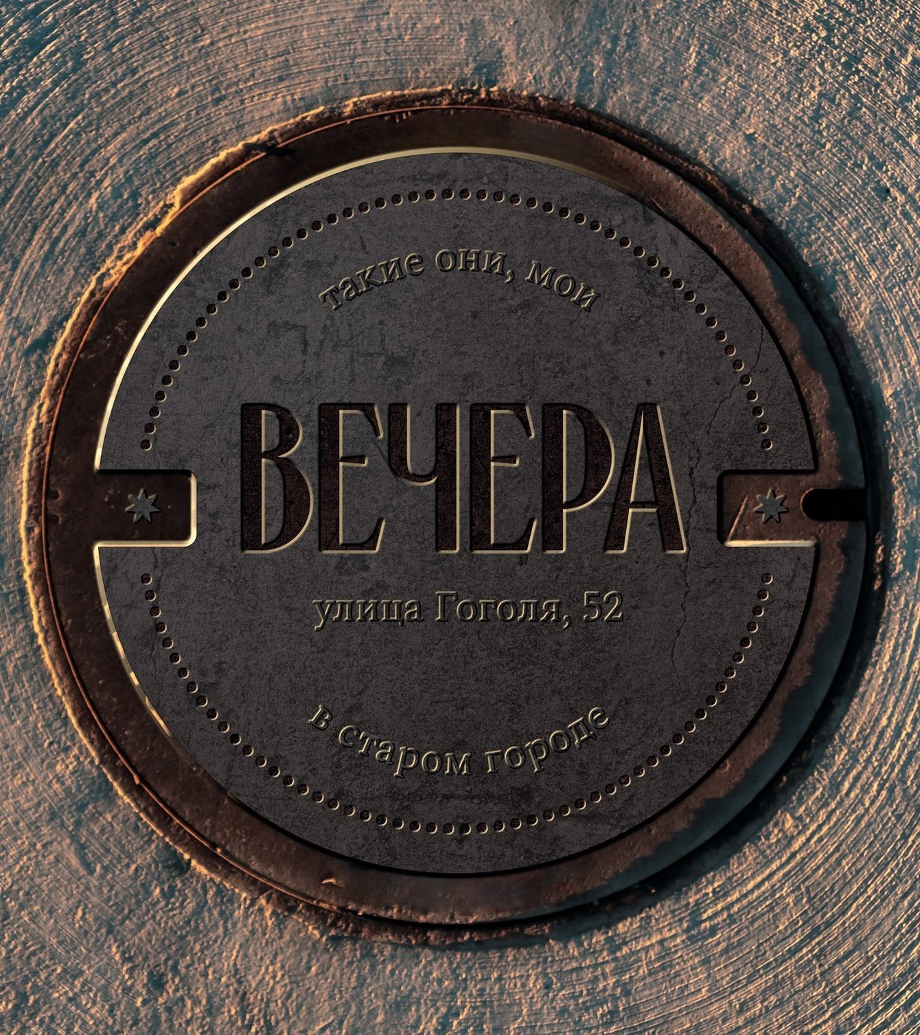 ЖК «Вечера» располагается на ул. Гоголя, поэтому фирменным знаком было решено сделать образ самого писателя. Текстовая часть логотипа выполнена шрифтом Belarus. Основной фирменный шрифт Spectral был подобран, учитывая литературный лейтмотив бренда, и может дополняться рукописным шрифтом Gogol, разработанным на основе почерка писателя, который служит акциденцией для носителей бренда.