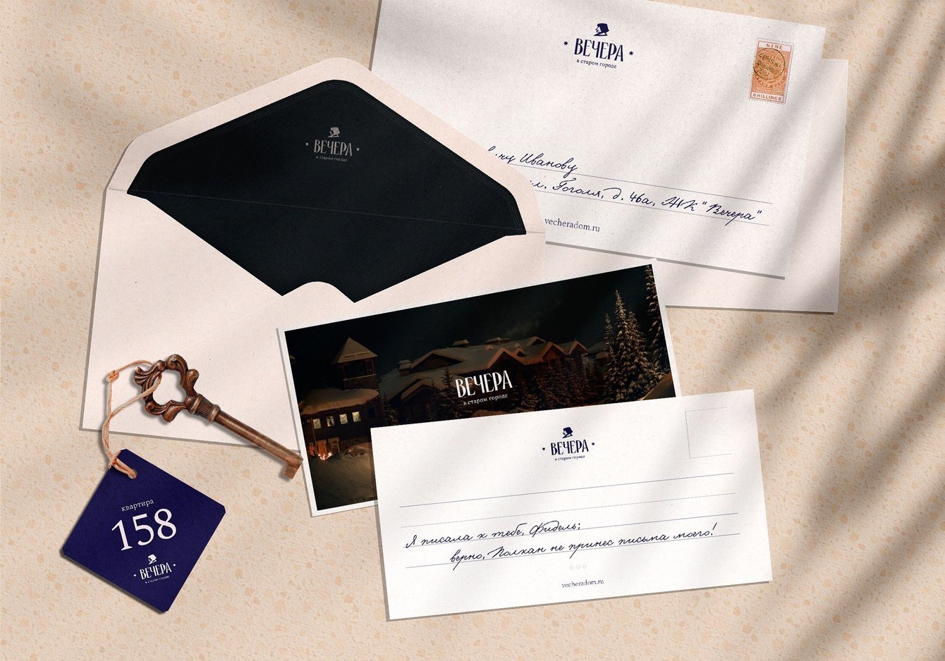 Все эти факты легли в основу концепции, транслирующейся через название в сочетании с дескриптором: «Вечера в старом городе». Произведения, персонажи, цитаты и визуальные мотивы Николая Гоголя неразрывно связаны с образом дома, так как само название отсылает нас к одноименному сборнику повестей. Они помогают доносить преимущества, увлекать потенциальных и, в будущем, действительных жильцов в атмосферу подобную литературному произведению. Чем можно заняться, как себя чувствовать и что могут принести «Вечера» повествуют коммуникации бренда.
