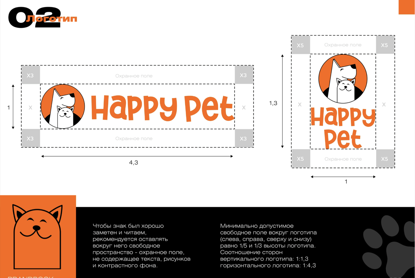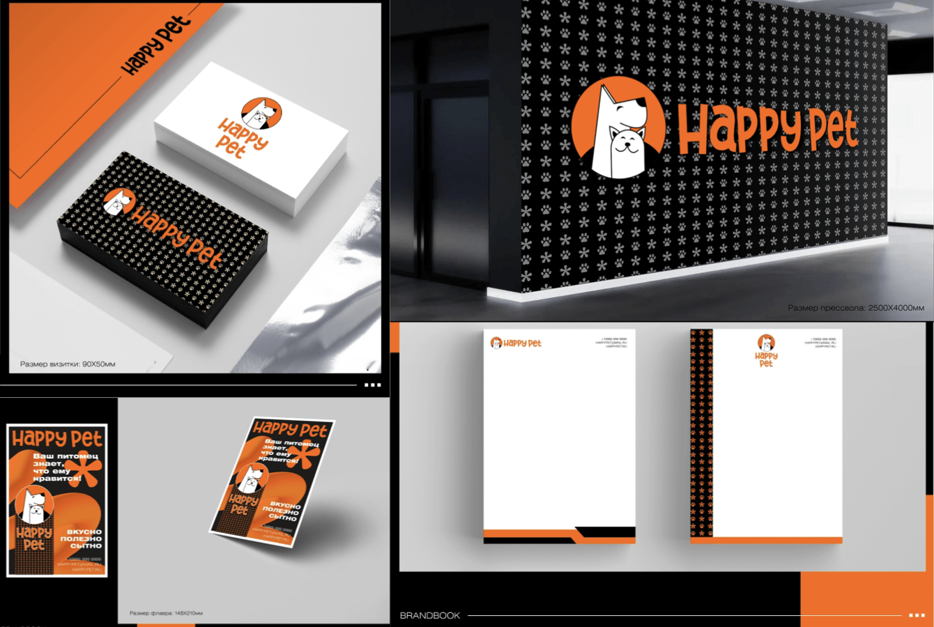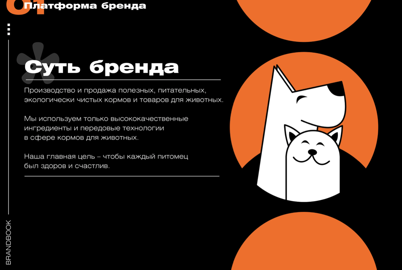В фирменном стиле мы отразили и ответственность производителя - полезное питания для животных из высококачественных ингредиентов, и важность для владельцев ощущения счастья, которое питомец испытывает, питаясь вкусным и полезным, и то, что счастье питомца складывается из нескольких составляющих - вкус, польза и здоровье.