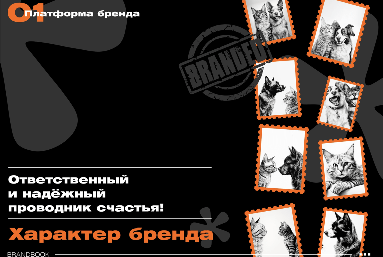Логотип должен был быть располагающим, дружелюбным, вызывать эмоции и сочетать в себе "основных потребителей", поэтому появились образы кота и собаки.