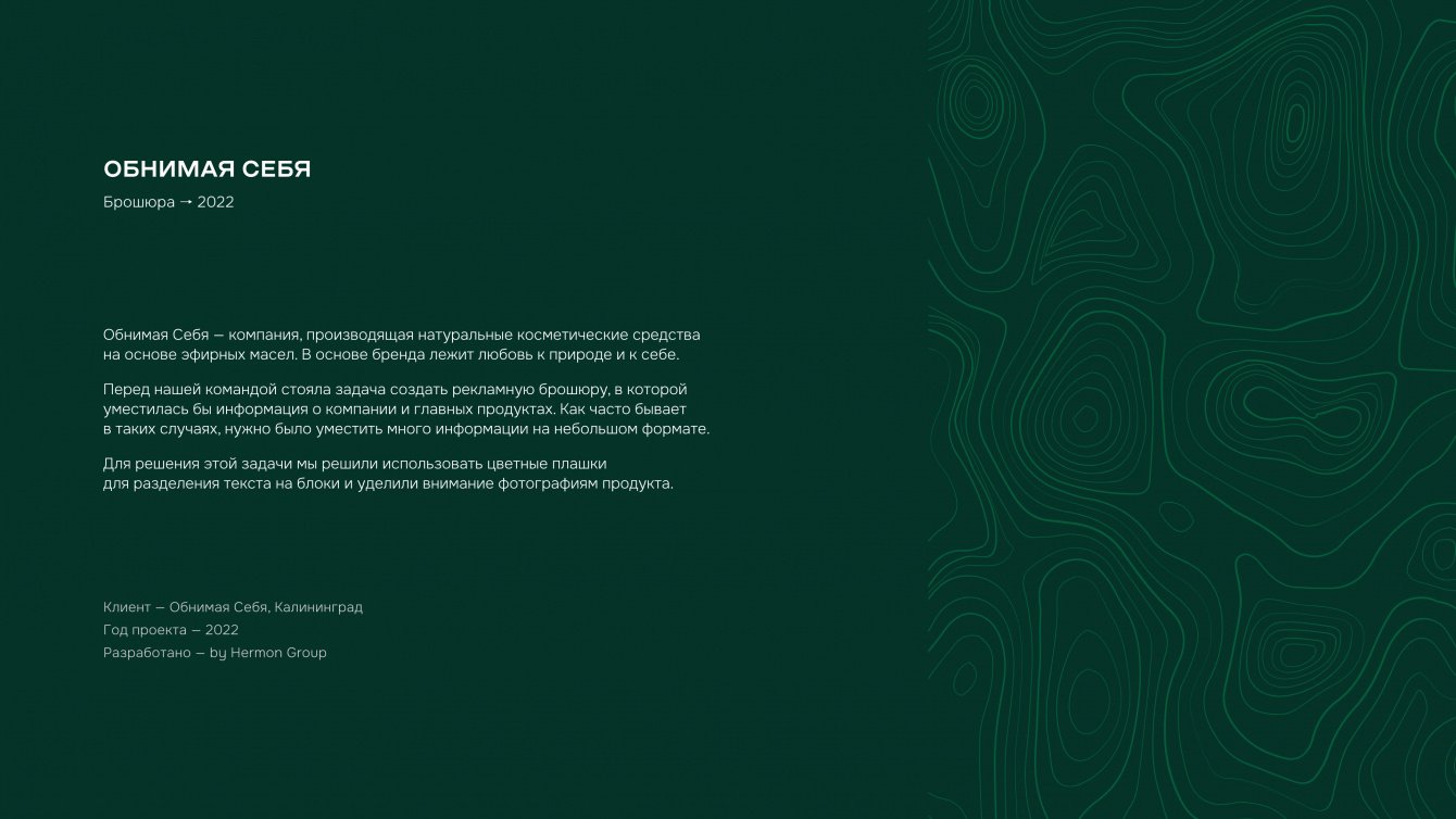 Перед нашей командой стояла задача создать рекламную брошюру, в которой уместилась бы информация о компании и главных продуктах. Как часто бывает в таких случаях, нужно было уместить много информации на небольшом формате.