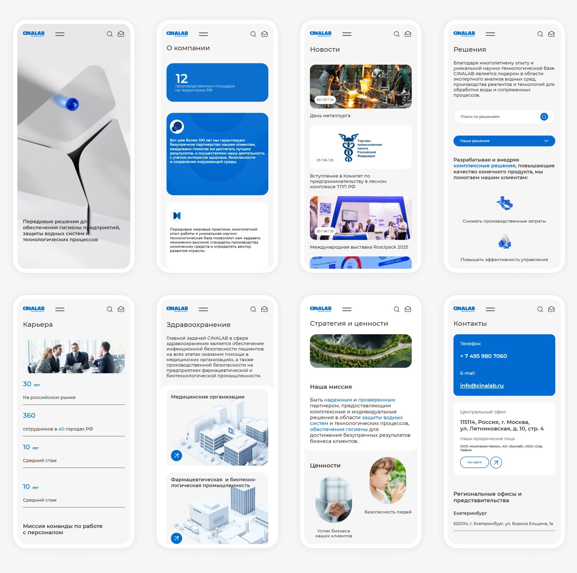 От ключевого визуала с планетой, который стал узнаваемым символом, до продуманной архитектуры и строгой дизайн-системы — каждый элемент работает на формирование образа высокотехнологичного, ответственного и надежного партнера. Сайт и бренд-платформа стали тем прочным фундаментом, на котором CINALAB будет динамично развиваться, а мы будем сопровождать этот рост, развивая цифровую экосистему вместе с ними.