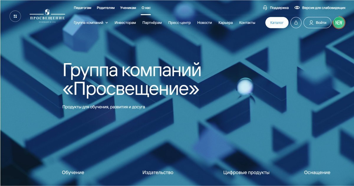 Основной задачей было создать единую цифровую платформу, объединяющую корпоративный и пользовательский сайты Группы компаний «Просвещение», чтобы обеспечить удобную навигацию и улучшить пользовательский опыт.